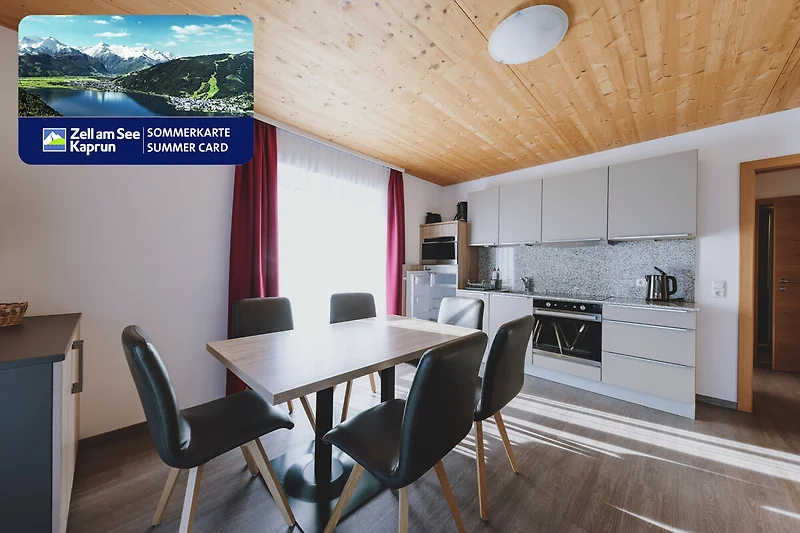 Superior Ferienwohnung. Balkon. 2 Schlafzimmer. 2 Badezimmer. 57m². 1 - 6 Personen. Erleben Sie Ihren Traumurlaub in Zell am See in unserem Appartements Sulzer - TOP 22 und profitieren Sie vom Bestpreis direkt beim Eigentümer. Das Appartement mit Balkon und Bergblick bietet auf 57m² Platz für bis zu 6 Personen. Das 1. Schlafzimmer ist ausgestattet mit 1 Doppelbett. Das 2. Schlafzimmer verfügt über ein Doppelbett als auch eine Doppelausziehcouch. Im Wohnzimmer befindet sich eine Doppelausziehcouch für 2 Personen, eine Essecke als auch ein Flat TV. Die Küche ist vollständig ausgestattet und bietet einen Backofen, Cerankochfeld, Kaffeemaschine, Wasserkocher, Toaster, Geschirrspüler und eine Kühl-Gefrierkombination.Die 2 Badezimmer im Apartment sind aufgeteilt in Waschbecken, Dusche, WC mit Bidet und bieten einen Föhn als auch Shampoo & Duschgel für unsere Gäste. Zusätzlich zur tollen Ausstattung der Ferienwohnungen bietet das Appartements Sulzer in Zell am See noch einen Garten mit Sitzmöglichkeiten im Freien, einen Skikeller mit Skischuhtrockner, einen Spielraum (AirHockey, Tischtennis, Tischfussball) als auch eine kostenlose Garage für Gäste direkt am Haus. Waschmaschine & Trockner stehen Ihnen während Ihres Aufenthalts in den Allgemeinbereichen zur Verfügung (Anmeldung erforderlich). Die Lage überzeugt! Gelegen am südlichen Ortsteil von Zell am See (Schüttdorf) sind Restaurants als auch Supermärkte fussläufig erreichbar. Die schönsten Ausflugsziele als auch Aktivitäten befinden sich in unmittelbarer Nähe. Der Einstieg ins Skivergnügen beim AreitXpress auf der Schmittenhöhe ist lediglich 800 Meter entfernt, der Golfplatz Zell am See-Kaprun ist 2 Kilometer entfernt. Zum südlichsten Teil des Zeller Sees sind es 1,5 Kilometer.