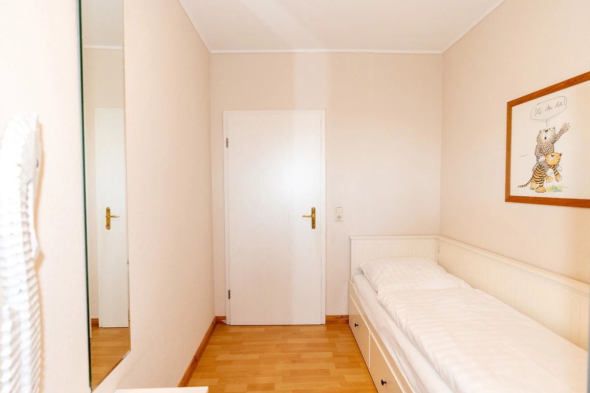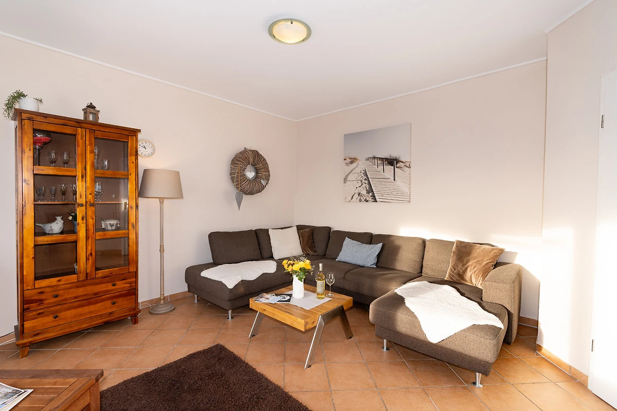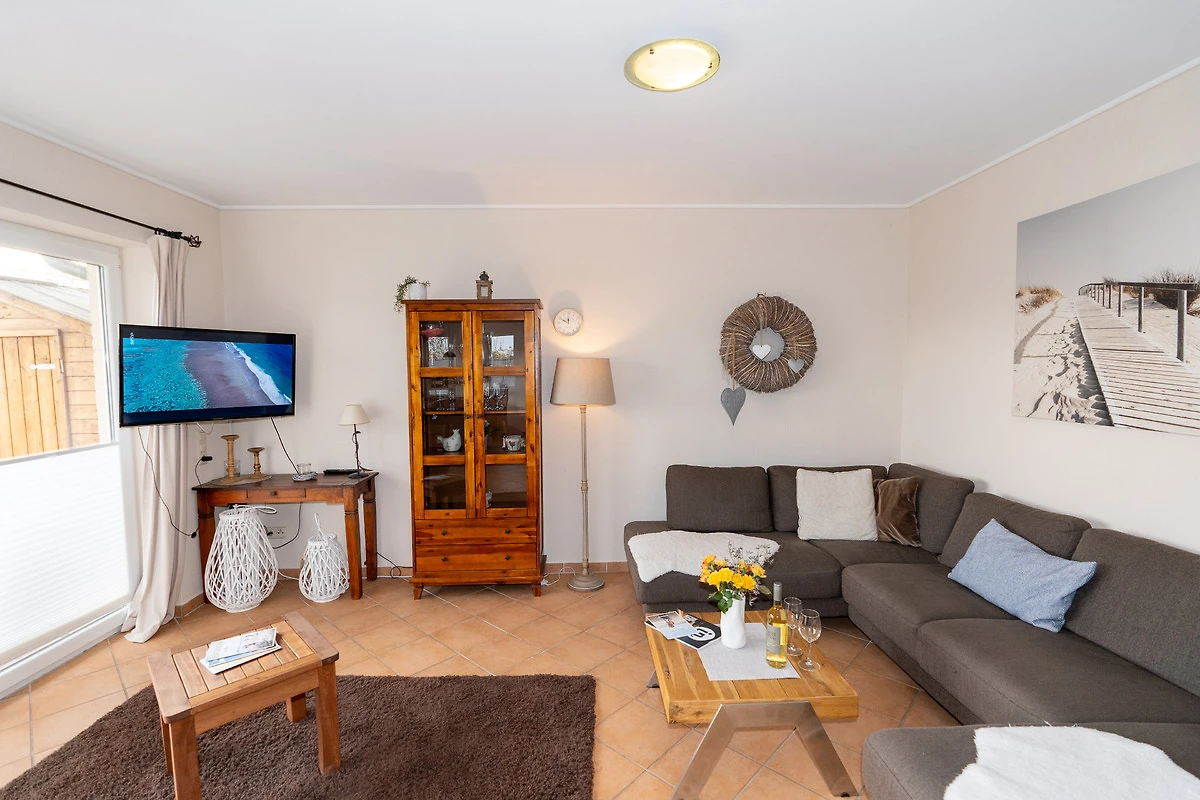 Mit einer Fläche von 60 m² erstreckt sich diese Erdgeschosswohnung über drei Zimmer, die vom grosszügigen Flur aus zugänglich sind. Sie finden hier ein Schlafzimmer mit einem Doppelbett (2x 90x200 cm) sowie ein Kinderzimmer, das mit einem Einzelbett (90x200 cm) und einem Etagenbett (2x 90x200 cm) ausgestattet ist. Die geschmackvolle Einrichtung sorgt in der gesamten Wohnung für ein harmonisches Ambiente und ein rundum wohltuendes Gefühl. Ein besonderes Highlight ist die offene und geräumige Wohnküche, die ideal ist, um Zeit mit der Familie zu verbringen. Auf der dazugehörigen, möblierten Terrasse mit Markise und Grill können Sie die warmen Tage geniessen und entspannt ausklingen lassen. Das Badezimmer bietet mit einer bodentiefen Dusche, einem beheizbaren Handtuchhalter und Fussbodenheizung alles, was Sie sich wünschen, um den Alltag hinter sich zu lassen.