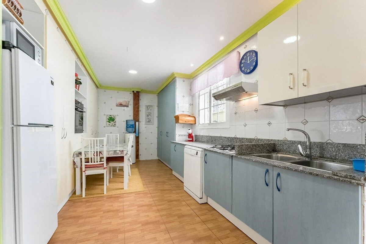 Parterre: (Eingang(Gemeinschaftliche Nutzung mit anderen Gästen, von außen erreichbar), Wohnzimmer(TV(Flatscreen, internationale TV-Kanäle), Sitzecke), Küche(Kochplatte, Wasserkocher, Dunstabzugshaube, Kaffeemaschine, Backofen, Mikrowelle, Kühl-/Gefrierkombination), Schlafzimmer(Doppelbett oder 2 Einzelbetten), Schlafzimmer(Doppelbett oder 2 Einzelbetten), Badezimmer(Dusche, Waschbecken, Toilette), Klimaanlage)