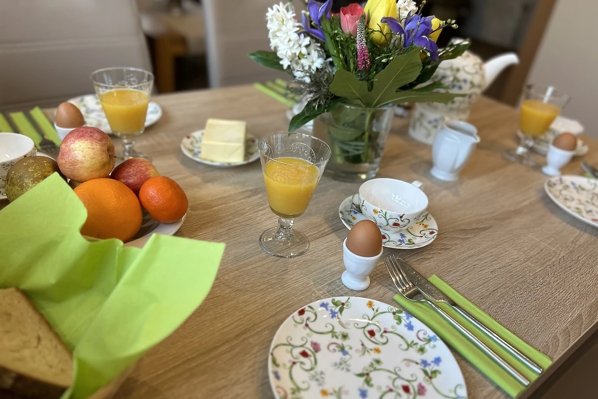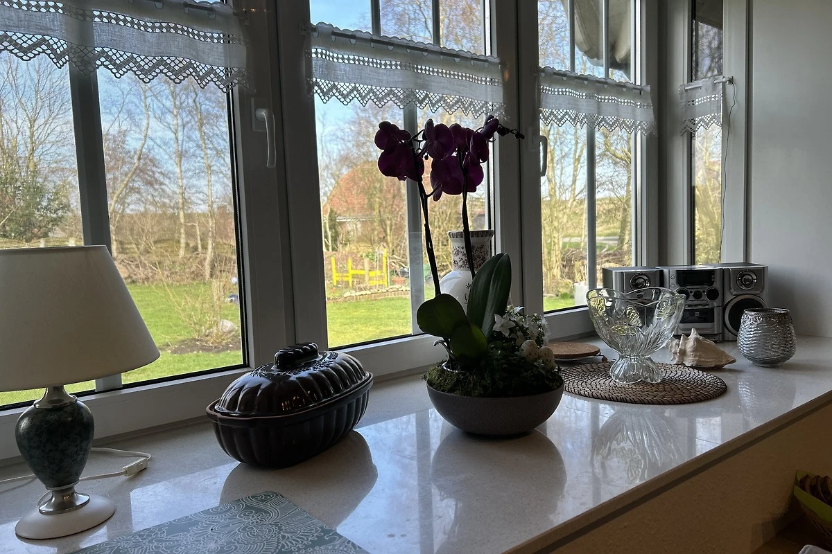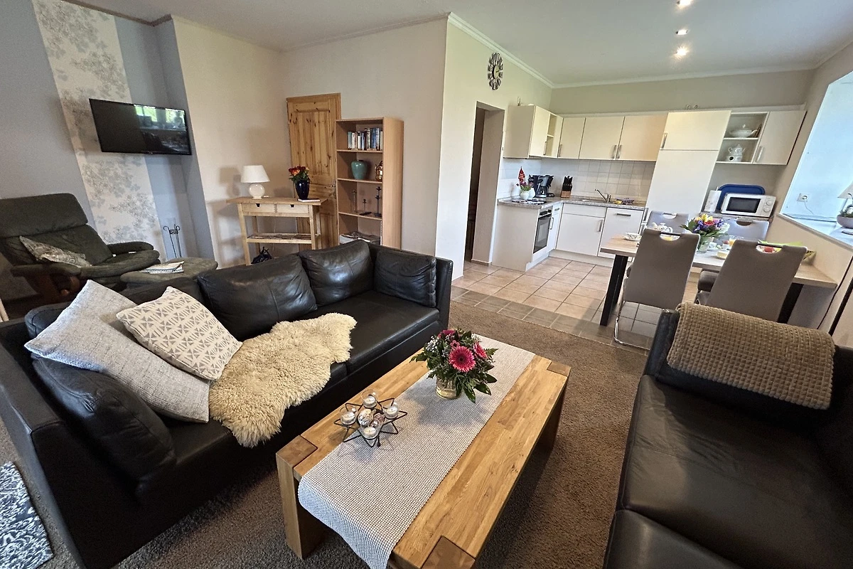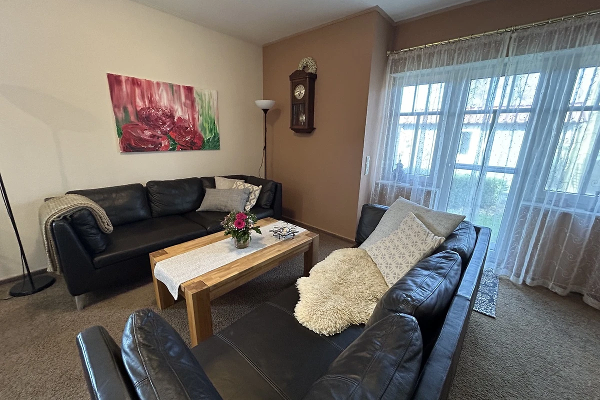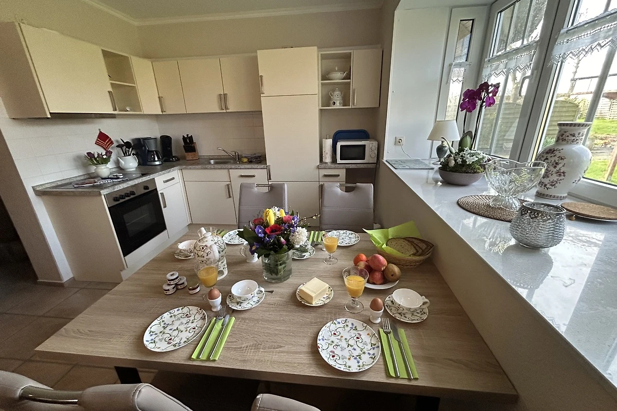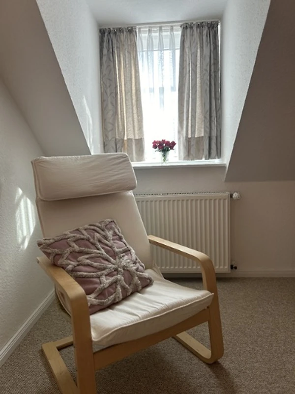 Ihre Kinder spielen auf unserem Spielplatz, mit vielen Spielgeräten wie Schaukel, Trampolin und Bolzplatz, während Sie die Ruhe auf dem Balkon, oder im liebevoll angelegten Garten genießen. Eine Terrasse mit Grillmöglichkeit lädt zu geselligen Abenden ein. Für Ihr Fahrzeug steht ein Parkplatz zur Verfügung. Die Wohnung ist komplett ausgestattet mit einer Küchenzeile, die keine Wünsche offenlässt: Spülmaschine, Mikrowelle, Wasserkocher und Kaffee- und Kaffeepadmaschine sind ebenso vorhanden wie eine umfassende Auswahl an Küchenutensilien.