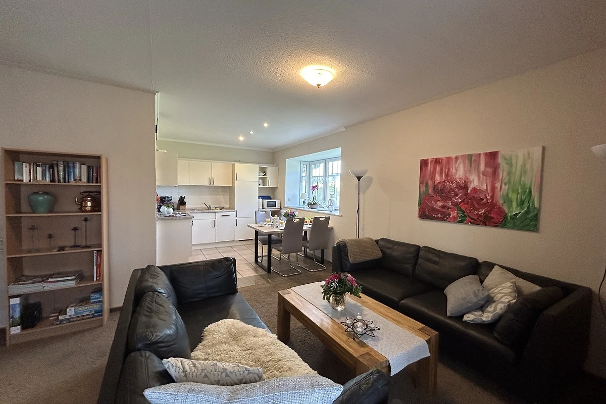 Es steht Ihnen eine Waschmaschine und ein Wäschetrockner im Nebengebäude zur Verfügung. Selbstverständlich ist die Wohnung mit WLAN, einem Bügeleisen und einem Haartrockner ausgestattet. Ein Fernseher für gemütliche Abende ist ebenfalls vorhanden.