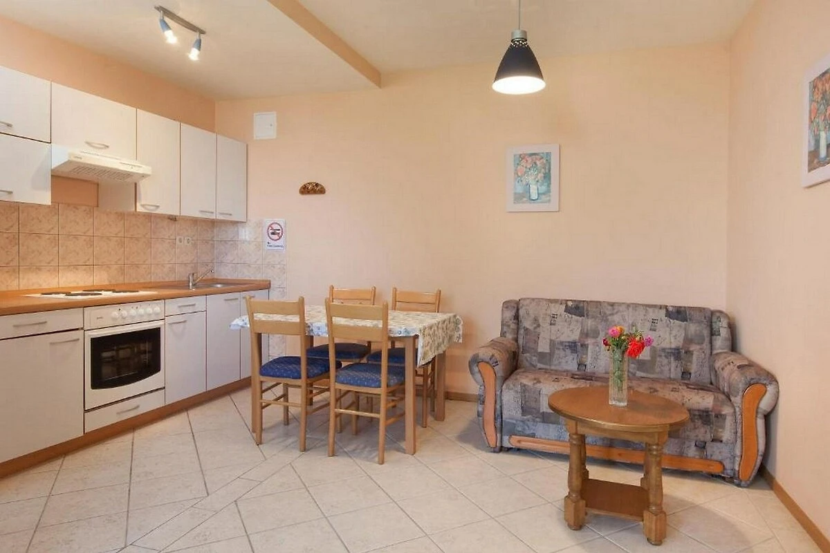 This lovely one bedroom apartment is a perfect fit for up to three people. It features free Wi-Fi, air-conditioning and flat-screen SAT TV. Open space kitchen is combined with dining and seating area. Private bathroom comes with shower and a hair dryer. It will also provide you with lovely furnished terrace overlooking the sea.