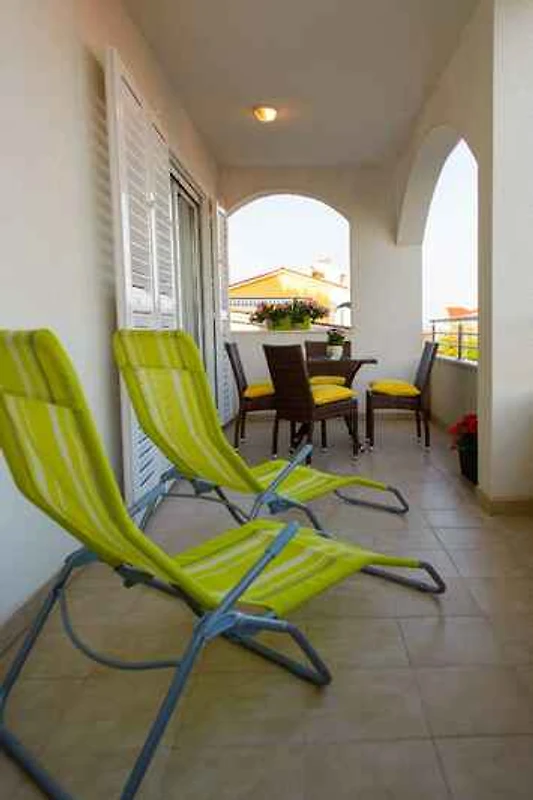 Die Ferienwohnung befindet sich in einem Apartementhaus und ist modern eingerichtet. Das Grundstück liegt in einem Wohngebiet. Auch wegen des Ausblicks vom Grundstück auf das Meer und der ruhigen und sonnigen Lage ist das Domizil beliebt. Zur gemeinsamen Nutzung stehen zur Verfügung: Sonnenschirm, Sonnenliege, Gartendusche, Grillmöglichkeit, Terrasse und Gartenmöbel.
