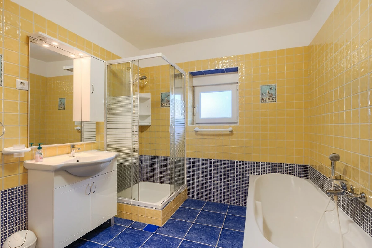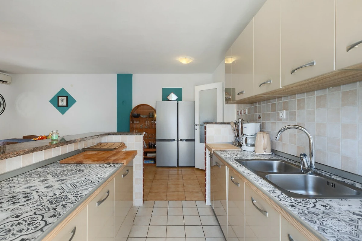 Die Villa verfügt über 6 gut gestaltete Badezimmer, mit einer ausgewogenen Mischung aus 3 Duschräumen und 3 Badezimmern mit Badewannen, die allen Gästen ausreichend Platz und Komfort bieten. Die moderne amerikanische Küche ist vollständig ausgestattet mit erstklassigen Annehmlichkeiten, einschliesslich einer Glaskeramik-Kochplatte, Kühlschrank, Gefrierschrank, Ofen, Mikrowelle, Geschirrspüler, Kaffeemaschine, Toaster und vollständigem Küchengeschirr und Geschirr.