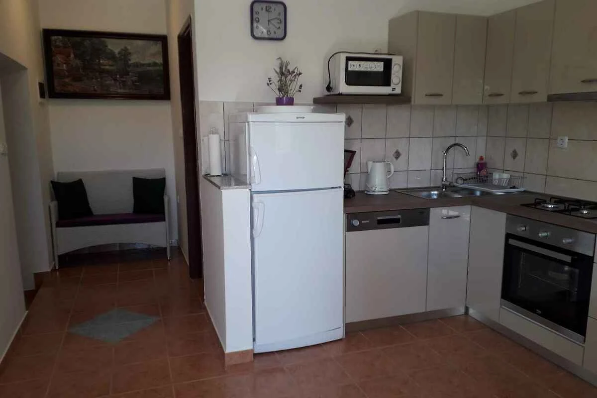 Lopar. Die Ferienwohnung befindet sich auf einem Bauernhof, auf einem 1500 qm grossen, offenen Gartengrundstück mit Wiese, Blumen, Sträuchern und Bäumen. Die Zufahrt erfolgt über eine Nebenstrasse (asphaltiert). Parkplatz (für 3 Pkws) auf dem Grundstück.