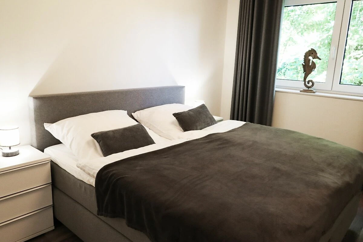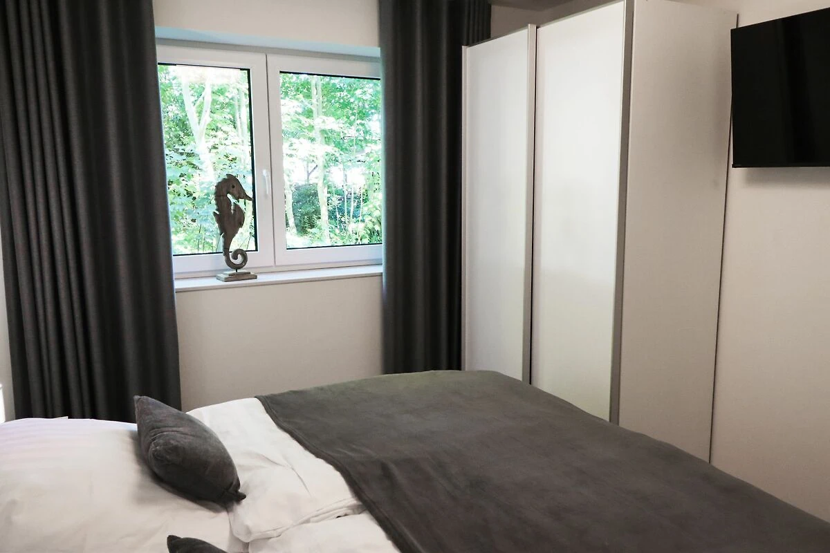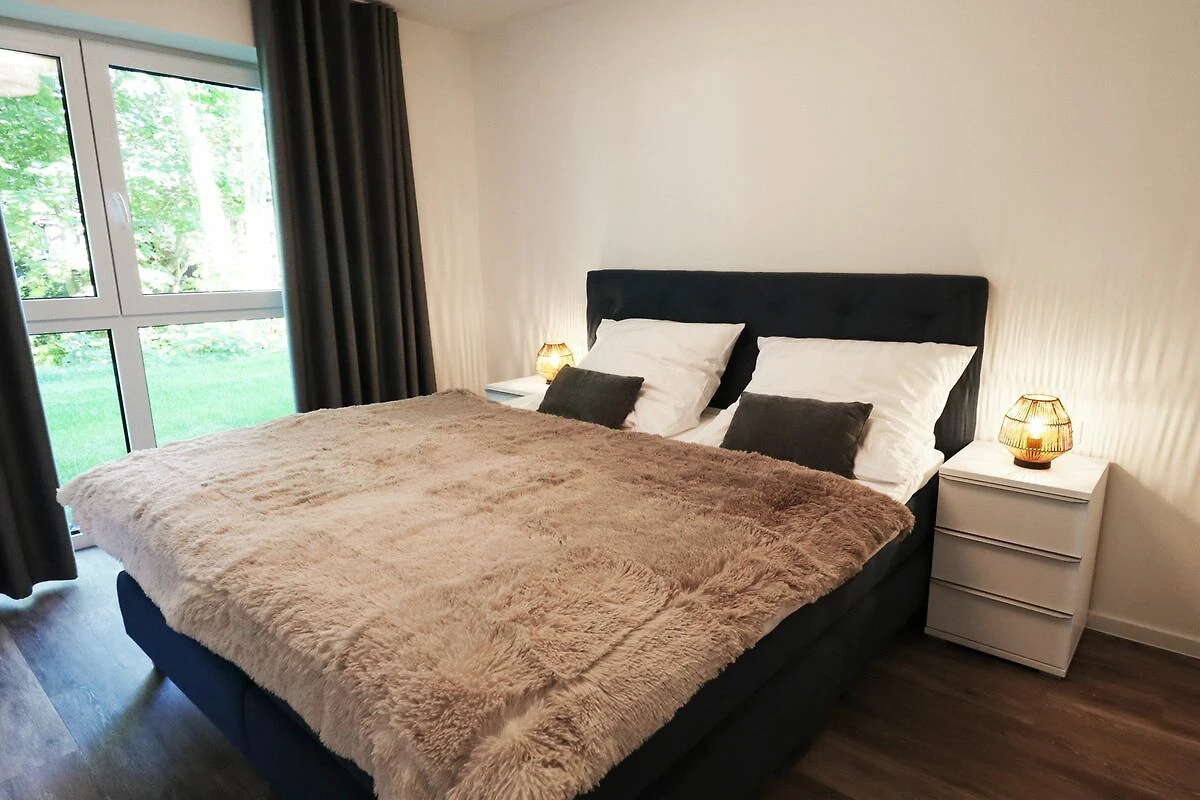 Zwei gemütliche Schlafzimmer bieten Platz für bis zu vier Personen. Das Hauptschlafzimmer verfügt über ein bequemes Doppelbett (180x200 cm) und einen großzügigen Kleiderschrank. Auch im zweiten Schlafzimmer schläfst du in einem Doppelbett (180x200 cm) – ideal für Familien oder gemeinsam reisende Freunde.