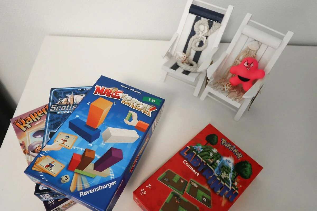 Für kleine Gäste gibt es Steckdosensicherungen, Spiele, einen Bollerwagen und ein Nachtlicht. Der Wohnbereich bietet viel Platz zum Spielen, draußen lädt die frische Nordseeluft zum Toben ein.