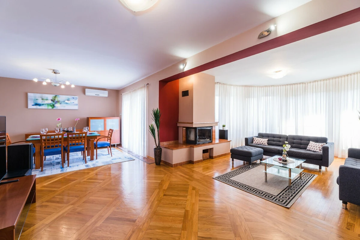 Gelegen in einem gut erschlossenen Stadtgebiet befindet sich die Villa nur 400 Meter von einem Felsstrand entfernt und innerhalb einer Gehstrecke eines Supermarktes in Novi Vinodolski. Rijeka ist ungefähr 45 km entfernt, wobei der lokale Flughafen nur 30 km vom Grundstück entfernt ist.