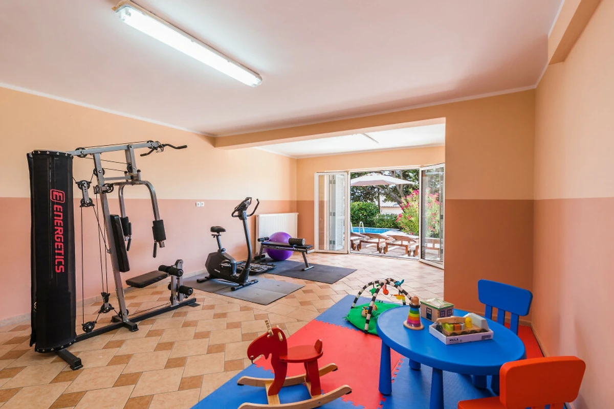 Geniessen Sie die beeindruckenden Innen- und Aussenmerkmale der Villa, einschliesslich eines privaten Swimmingpools (4 x 7,5 Meter), eines gepflegten Gartens und einer geräumigen Terrasse, die perfekt für Mahlzeiten im Freien ist. Ein privates Fitnessstudio ermöglicht es den Gästen, ihre Fitness-Routine beizubehalten, während der gemütliche Kamin Wärme und Atmosphäre an kühleren Abenden bietet.