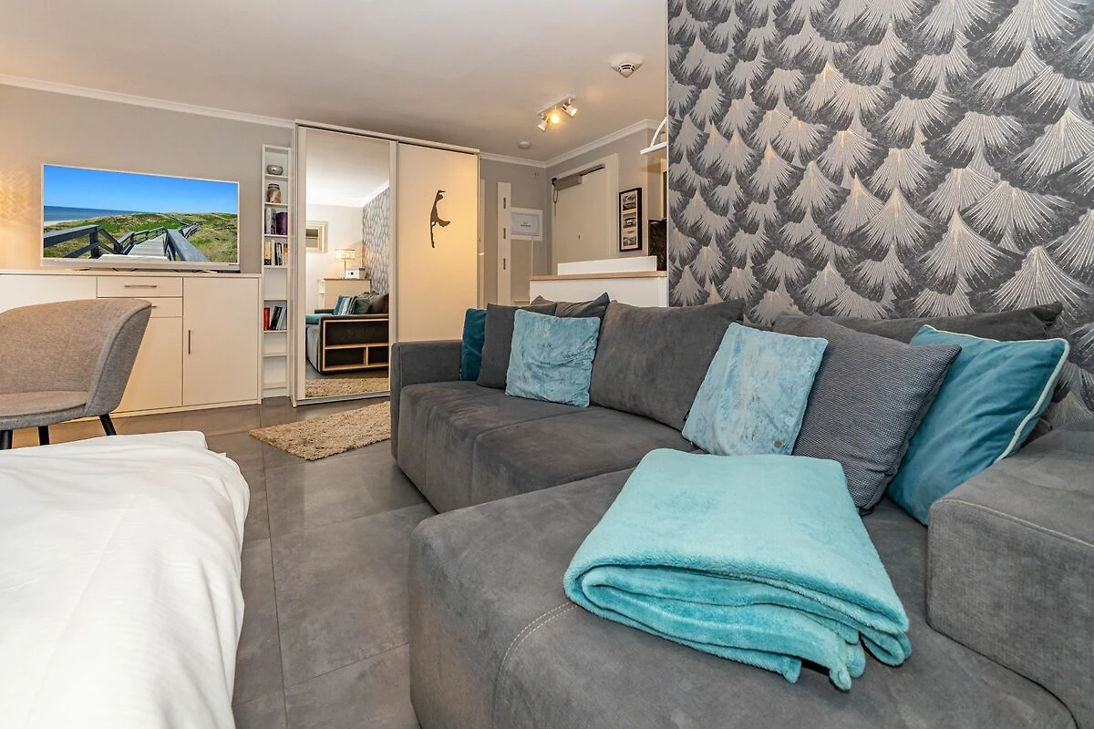 Die Dünenkoje App.205 bietet Ihnen eine komfortable Ferienwohnung auf Sylt, direkt an der Andreas-Dirks-Straße in zentraler Lage von Westerland. Auf ca. 30 m² finden bis zu zwei Gäste ideale Voraussetzungen für einen erholsamen Aufenthalt – sei es für Paare, Alleinreisende oder Geschäftsreisende, die Sylt hautnah erleben möchten. Die unmittelbare Nähe zum Strand – nur 100 Meter trennen Sie von Sand und Meer. Der möblierte Balkon mit Strandkorb zählt zu den besonderen Vorzügen dieses Appartements. Das Zentrum von Westerland erreichen Sie in wenigen Gehminuten, ebenso wie Supermärkte, Restaurants, Einkaufsmöglichkeiten sowie Ärzte, Banken und öffentliche Verkehrsanbindungen.