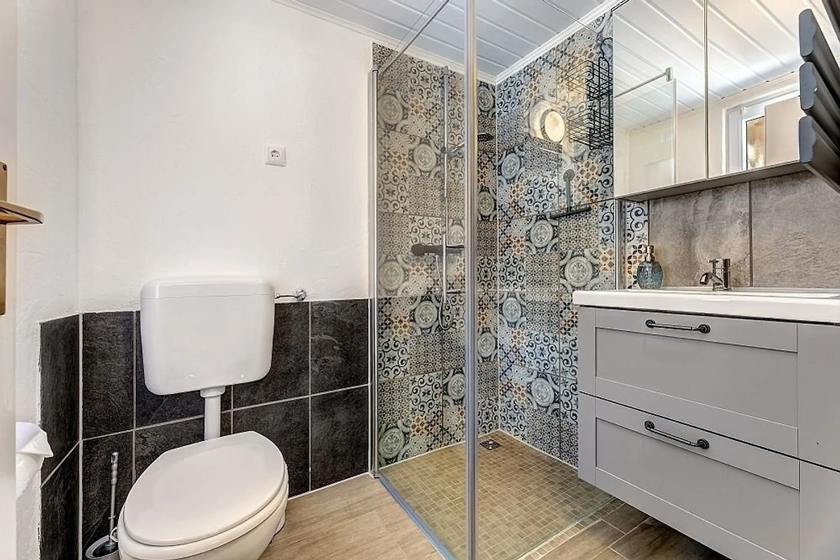 Mit grosser überdachter Terrasse und Grundstück. 2 Schlafzimmer. Bis zu 4 Personen. 60 qm. Komfortabel eingerichtet. Abschliessbare Fahrradhütte. Nur 200 Meter bis zum Bahnhof. Gratis WLAN, Kinderreisebett/-hochstuhl. Stellplatz direkt am Haus