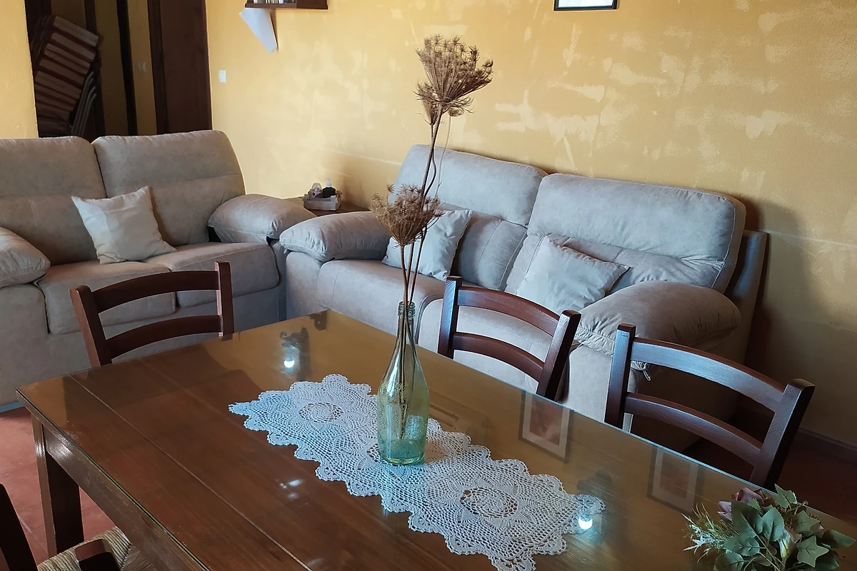Entdecken Sie das Ferienhaus Erholungsurlaub in Fuentes de Cesna, das perfekt ausgestattet ist, um bis zu 6 Gäste in 180 m² Wohnfläche mit drei Schlafzimmern und drei Bädern willkommen zu heißen. Dieses Haus bietet eine voll ausgestattete Küchenzeile mit Geschirrspüler, Mikrowelle, Wasserkocher und Kaffeemaschine, die alle Ihre kulinarischen Bedürfnisse erfüllt. Die gemütliche Atmosphäre wird durch einen Kamin im Wohnzimmer und eine Klimaanlage für die warmen Tage ergänzt.