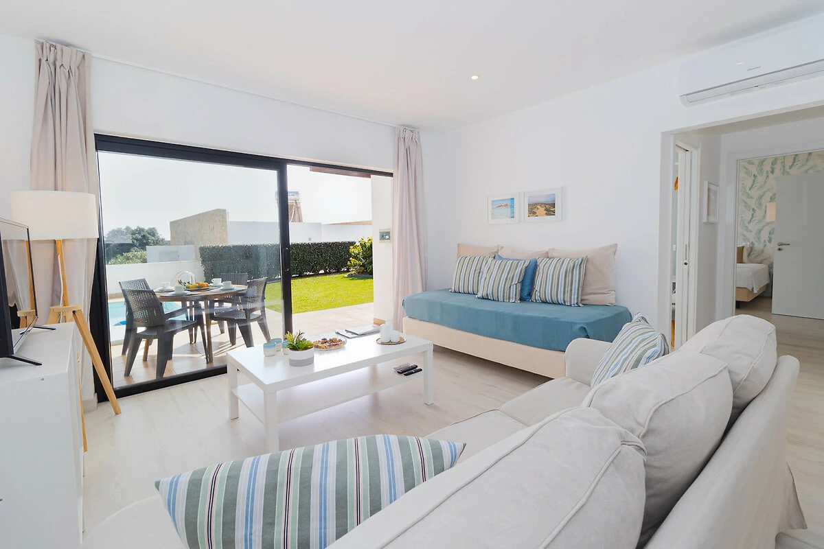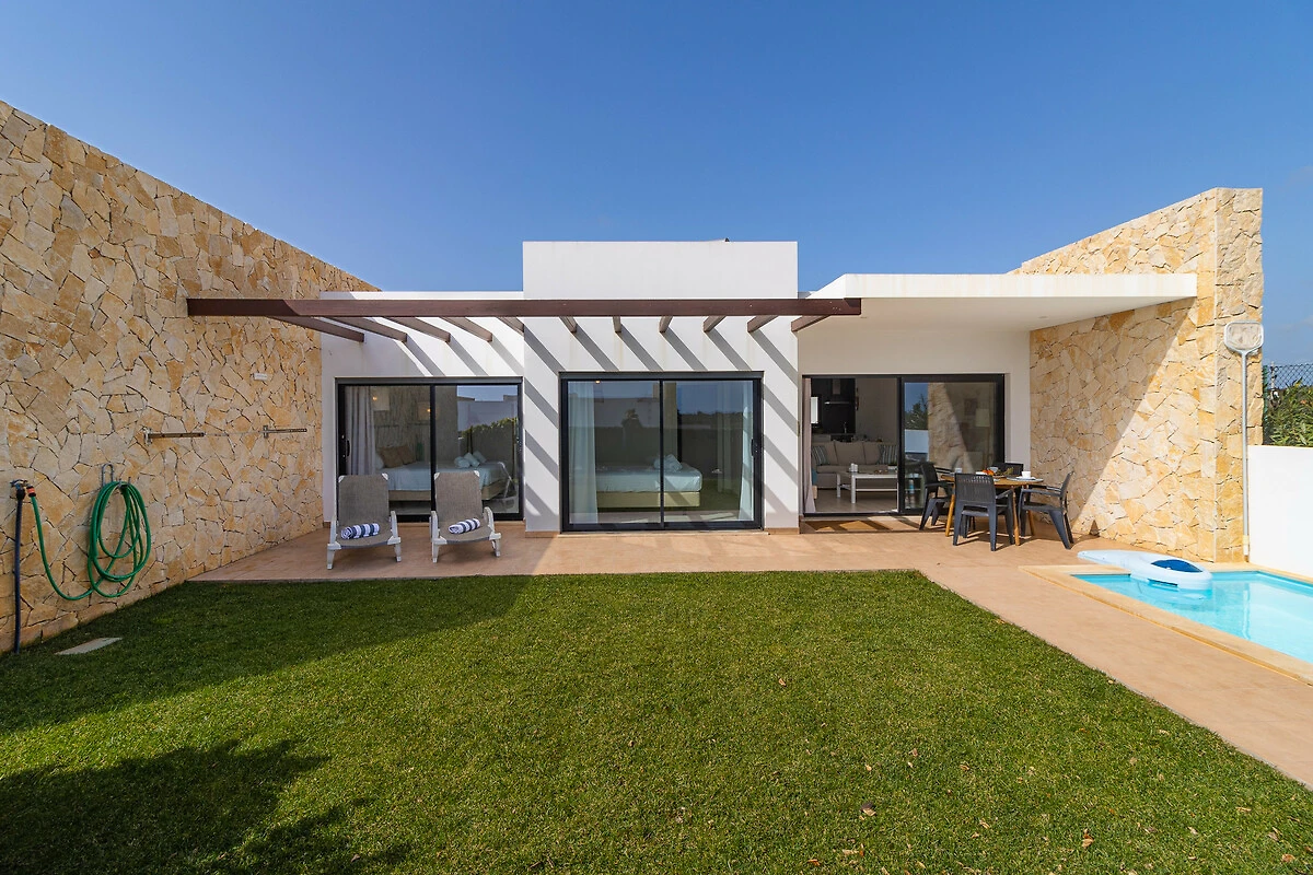 Unterkunft Unterkunft hat 100 m², mit Blick auf den Garten und den Pool.