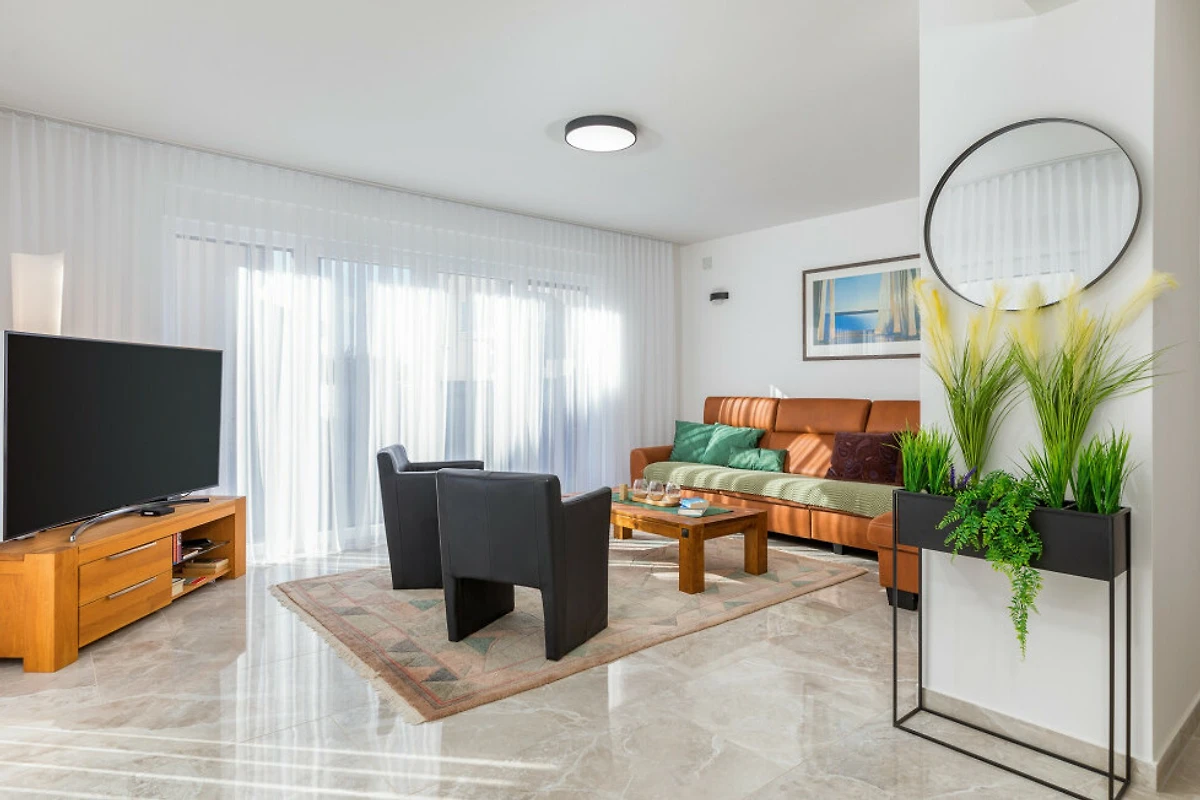 Die Villa bietet praktische Annehmlichkeiten wie kostenloses WLAN, Satellit-TV und Klimaanlage, um einen komfortablen Aufenthalt zu gewährleisten. Privater Aussenparkplatz ist für drei Fahrzeuge verfügbar und erhöht die Bequemlichkeit der Immobilie.