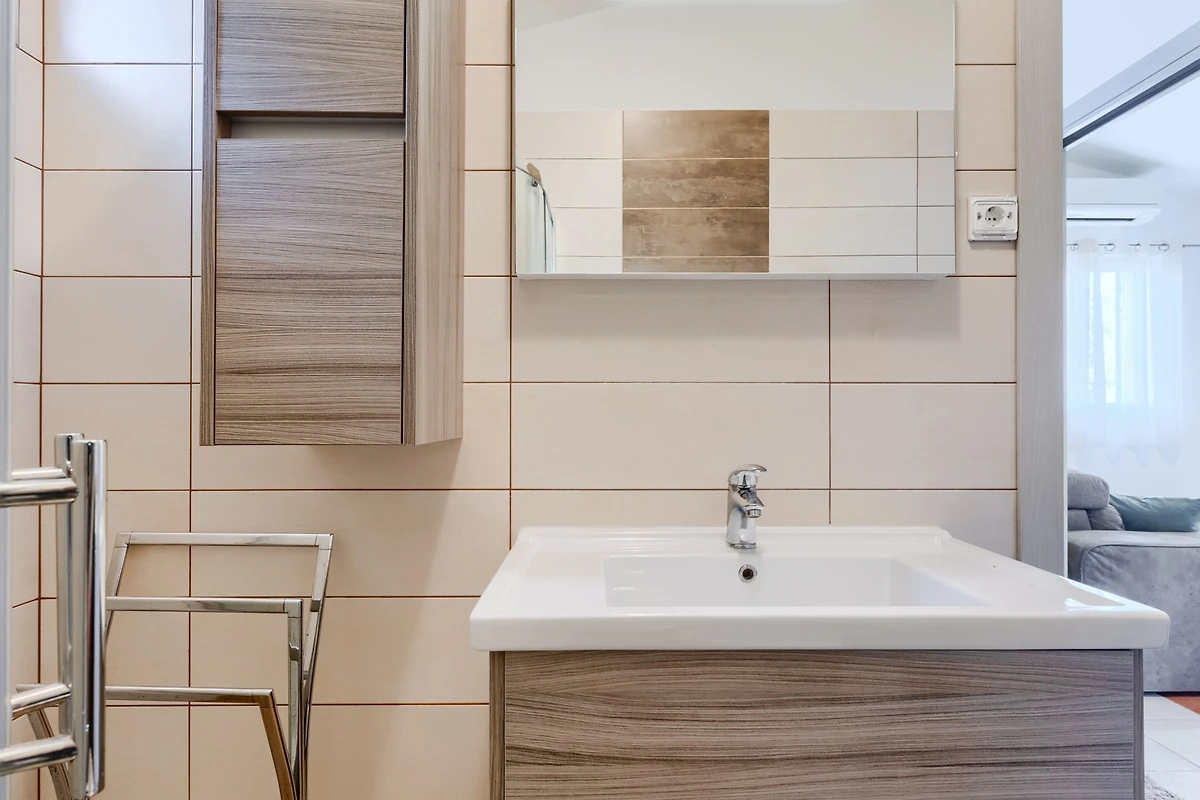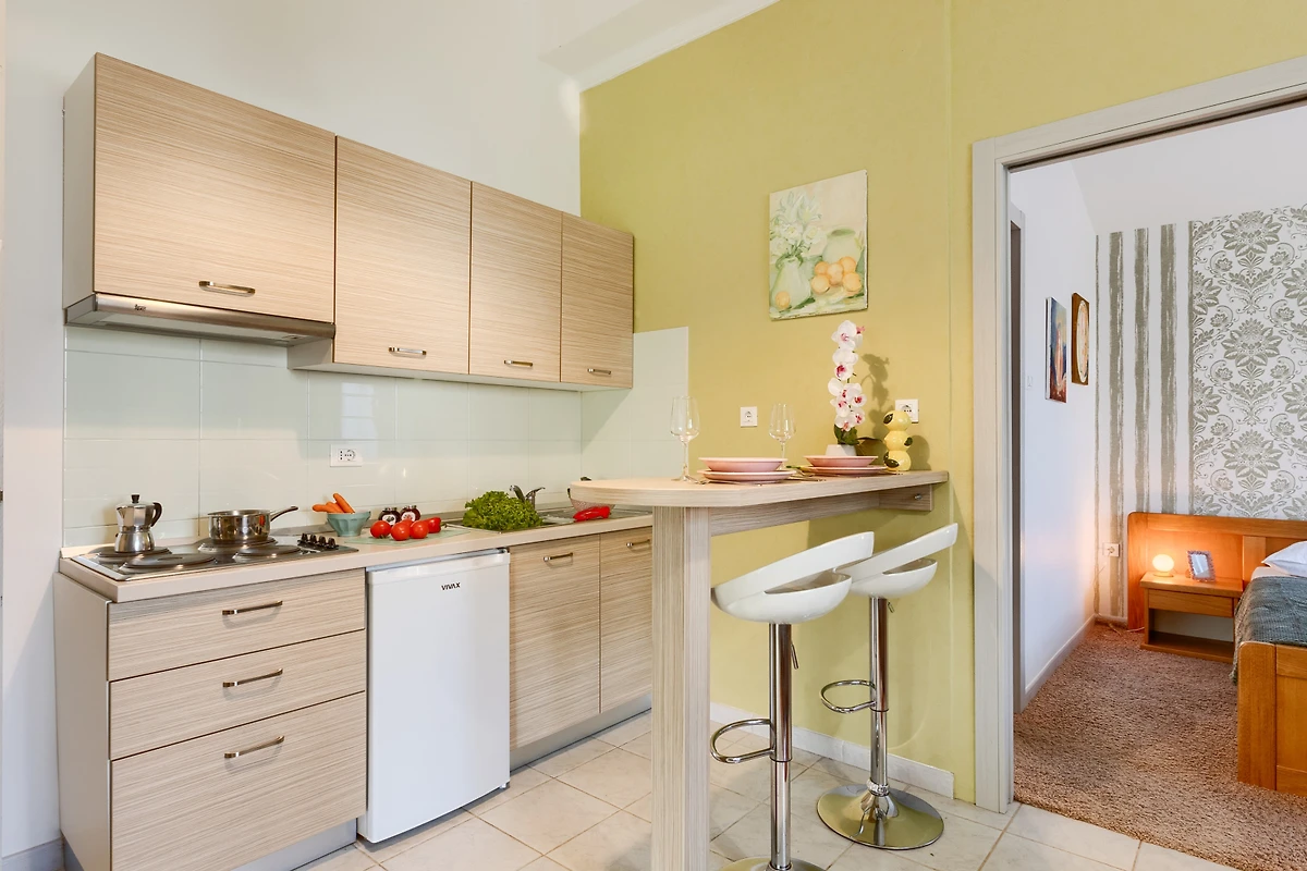 Das Parken ist bequem, mit einem privaten Aussenparkplatz direkt neben dem Gebäude. Die Villa liegt ideal, nur 900 Meter vom schönen Portin Biondi Strand und dem Stadtzentrum von Rovinj entfernt. Ein Supermarkt ist in leichter Reichweite, nur 1000 Meter entfernt, was Ihren Aufenthalt sowohl komfortabel als auch bequem macht.