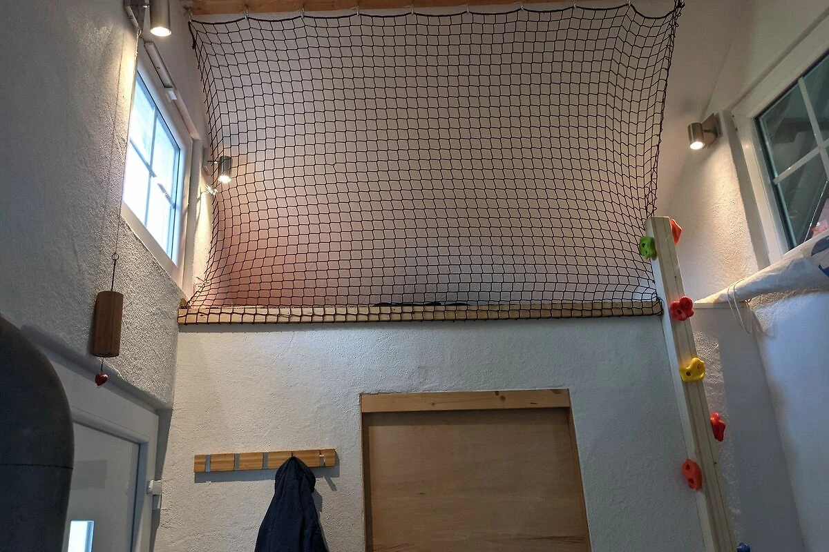 Das Ferienhaus verfügt über einen offenen Wohnessbereich mit direktem Zugang zur grosszügigen Terrasse. Die Küche ist voll ausgestattet und verfügt über einen sehr grossen Kühlschrank, Herd, Backofen und Spülmaschine. Im Ergeschoss befindet sich ausserdem ein Hauseingangsbereich mit Garderobe, das Tageslichtbad mit Dusche und ein gemütliches Wohnzimmer mit ausziehbarer Eckcouch und genügend Raum. Es gibt im oberen Stockwerk (Zugang über enge Treppe) einen Schlafraum mit einem Doppelbett (240x200). Die Unterkunft ist nicht für kleine Kinder geeignet, da nicht alle Treppen/ Terassen (innen und aussen) gesichert sind. Im Aussenbereich läd eine grosszügige Terrasse mit Sitzmöbeln oder Liegestühlen zum Verweilen ein. Neben dem Haus befindet sich Rasen.