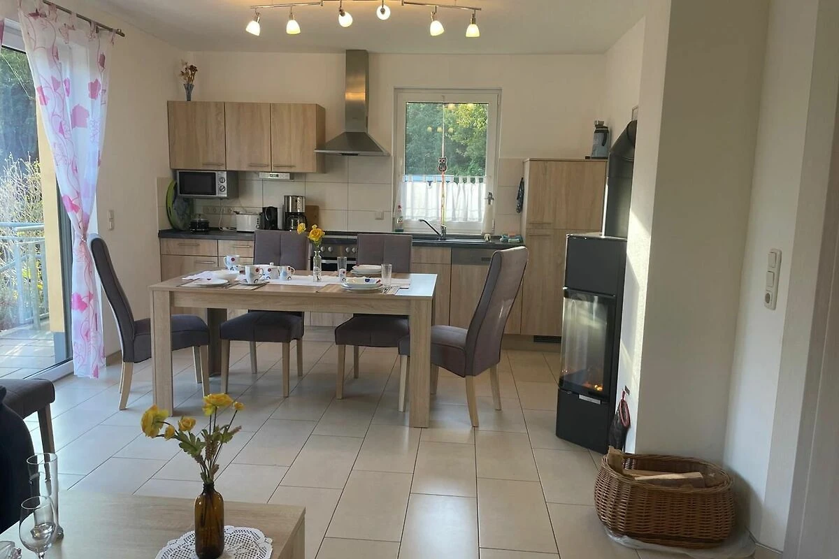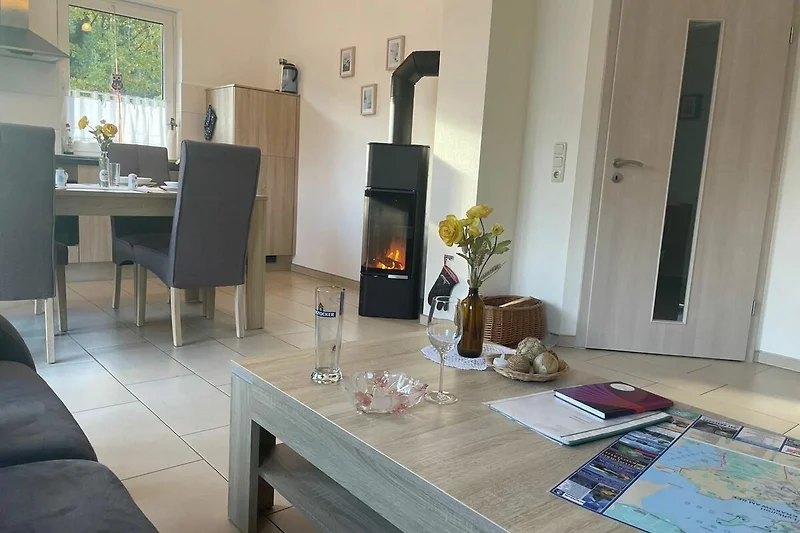 Das grosszügige, im Jahr 2015 neu erbaute Doppelferienhaus bietet ideale Voraussetzungen für eine erholsame Auszeit mit der ganzen Familie. Es liegt in ruhiger Stadtrandlage südöstlich des Krakower Sees. In unmittelbarer Nähe befindet sich eine Bootsvermietung gegen Gebühr sowie ein idyllischer Naturbadestrand. Die beiden Nichtraucher-Haushälften umfassen jeweils 70 Quadratmeter Wohnfläche über zwei Ebenen und bieten komfortabel Platz für bis zu vier Personen. Im Erdgeschoss erwartet die Gäste ein lichtdurchfluteter Wohn- und Essbereich mit grosser Wohnlandschaft, einer modernen, voll ausgestatteten Küche und einem Kamin für gemütliche Abende. Zusätzlich steht ein Gäste-WC zur Verfügung. Der Zugang zum Haus und zur Terrasse ist ebenerdig und über den Wohnbereich erreichbar.