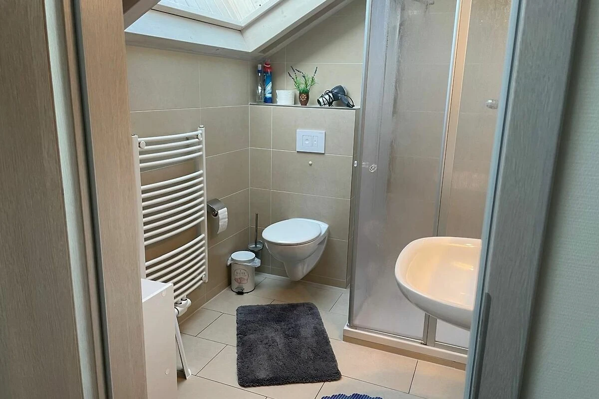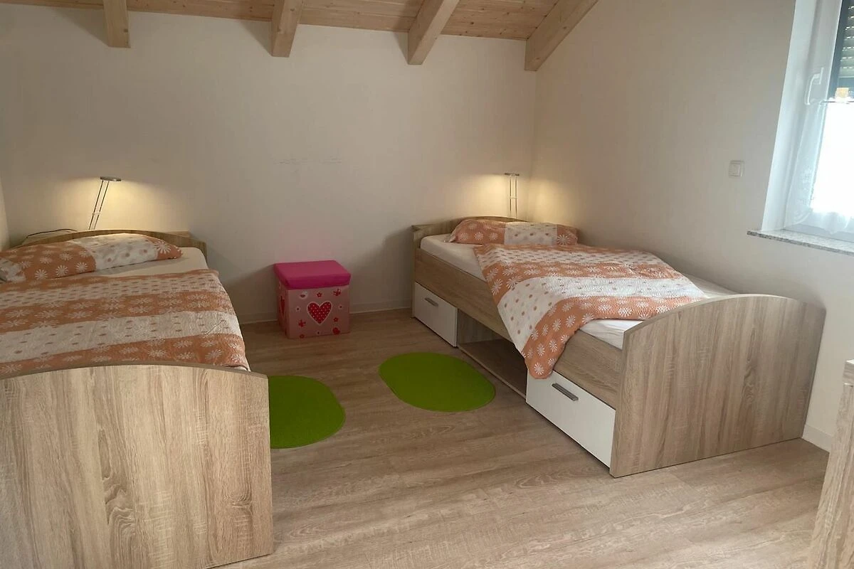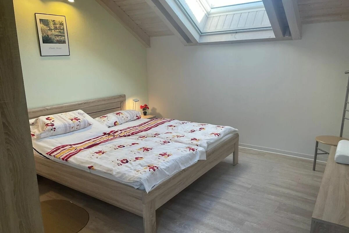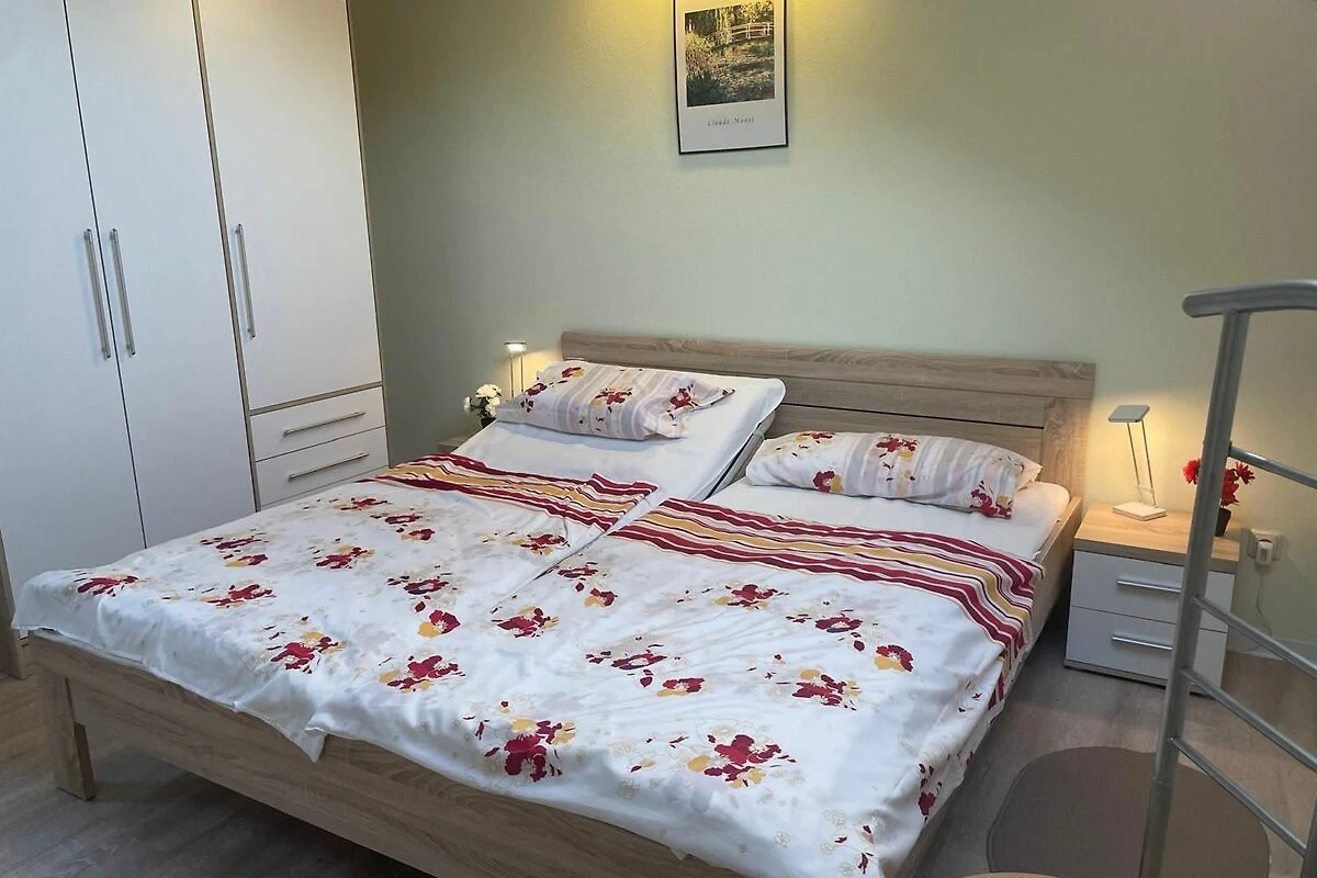 Im Obergeschoss befinden sich zwei Schlafräume für jeweils zwei Personen sowie ein modernes Badezimmer. Alle Fenster sind mit elektrischen Rollläden und manuellen Insektenschutzgittern ausgestattet. Zum Haus gehören zudem eine möblierte Terrasse mit Markise, ein eigener Garten, Grillmöglichkeiten sowie ein Bootssteg mit Ruderboot. Beide Wohneinheiten können bei Bedarf auch einzeln gebucht werden.