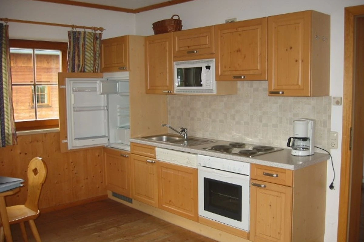 Voll ausgestattete Küche: Elektroherd, Backofen, Geschirrspüler, Kühlschrank, Kaffeemaschine, Mikrowelle & Aufschnittmaschine
