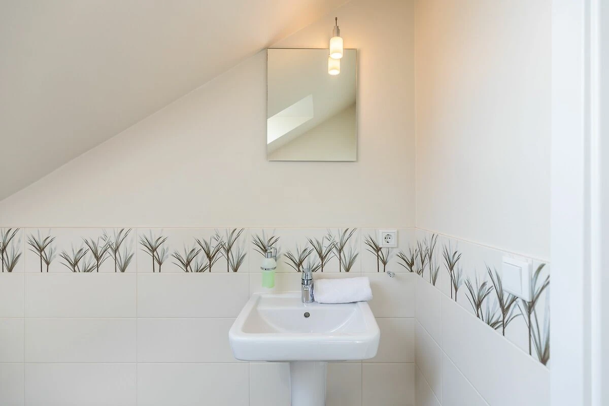 Das zweite Schlafzimmer liegt mit einem Doppelbett mit der Größe von 180x200cm im ersten Obergeschoss. Auf dieser Ebene finden Sie auch das große Badezimmer mit Dusche, Badewanne sowie zwei Waschbecken. Die Sauna rundet das Bild ab und lädt ein zum Verweilen für gemütliche Stunden. Das dritte und vierte Schlafzimmer befinden sich im zweiten Obergeschoss, eines mit jeweils zwei Einzelbetten (90x200cm) und ein weiteres Doppelbett mit der Größe von 180x200cm. Im zweiten Obergeschoss befindet sich noch ein Gäste-WC.