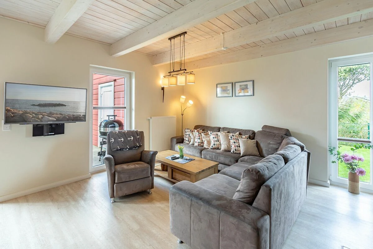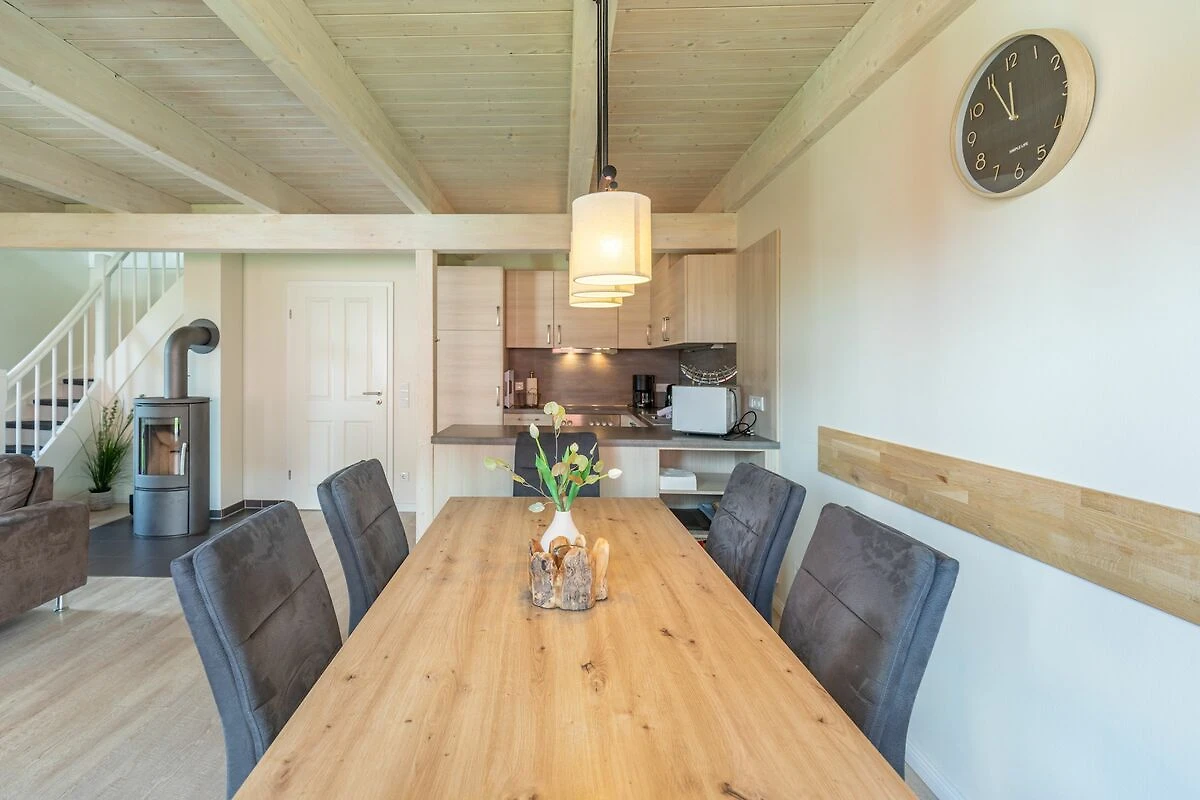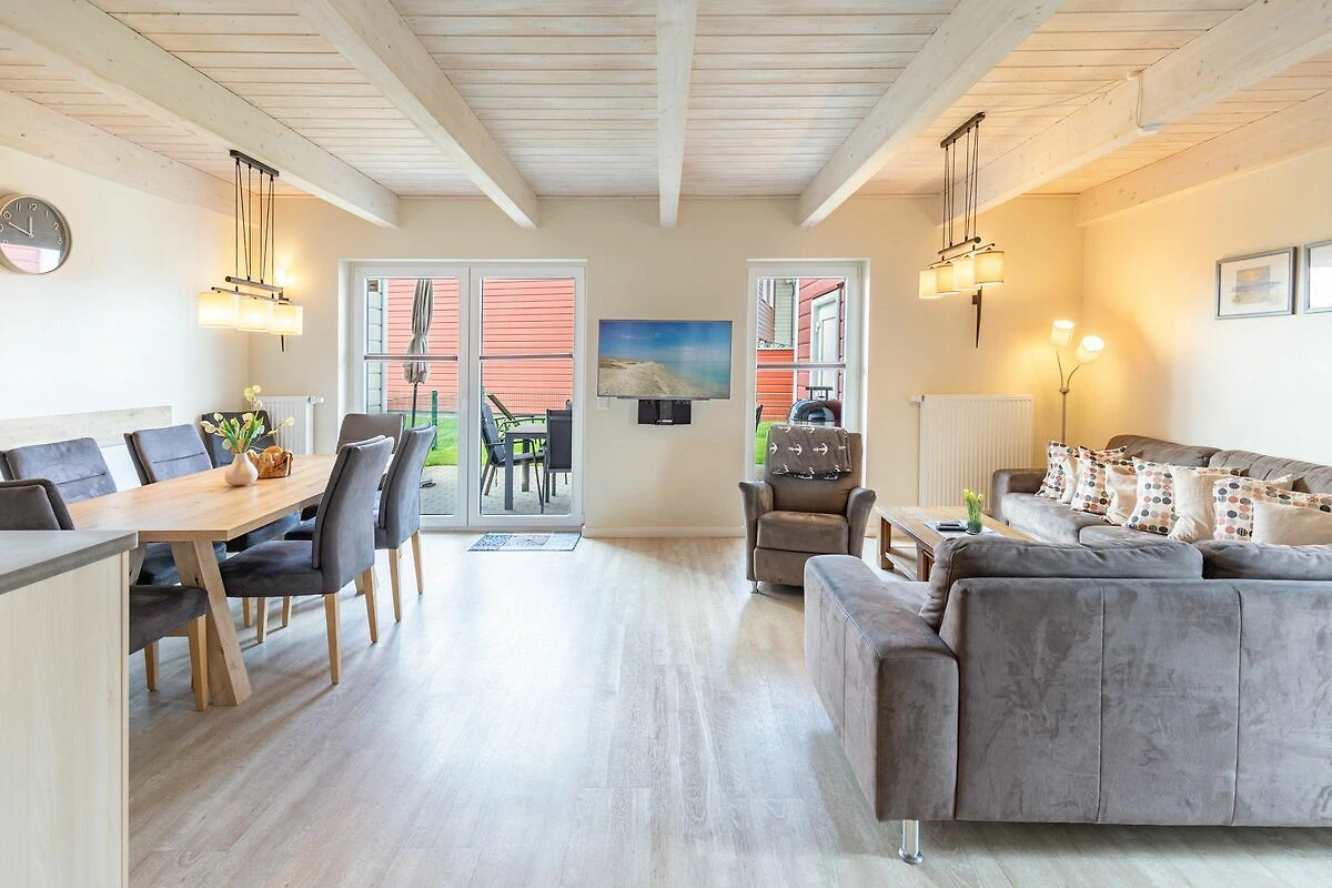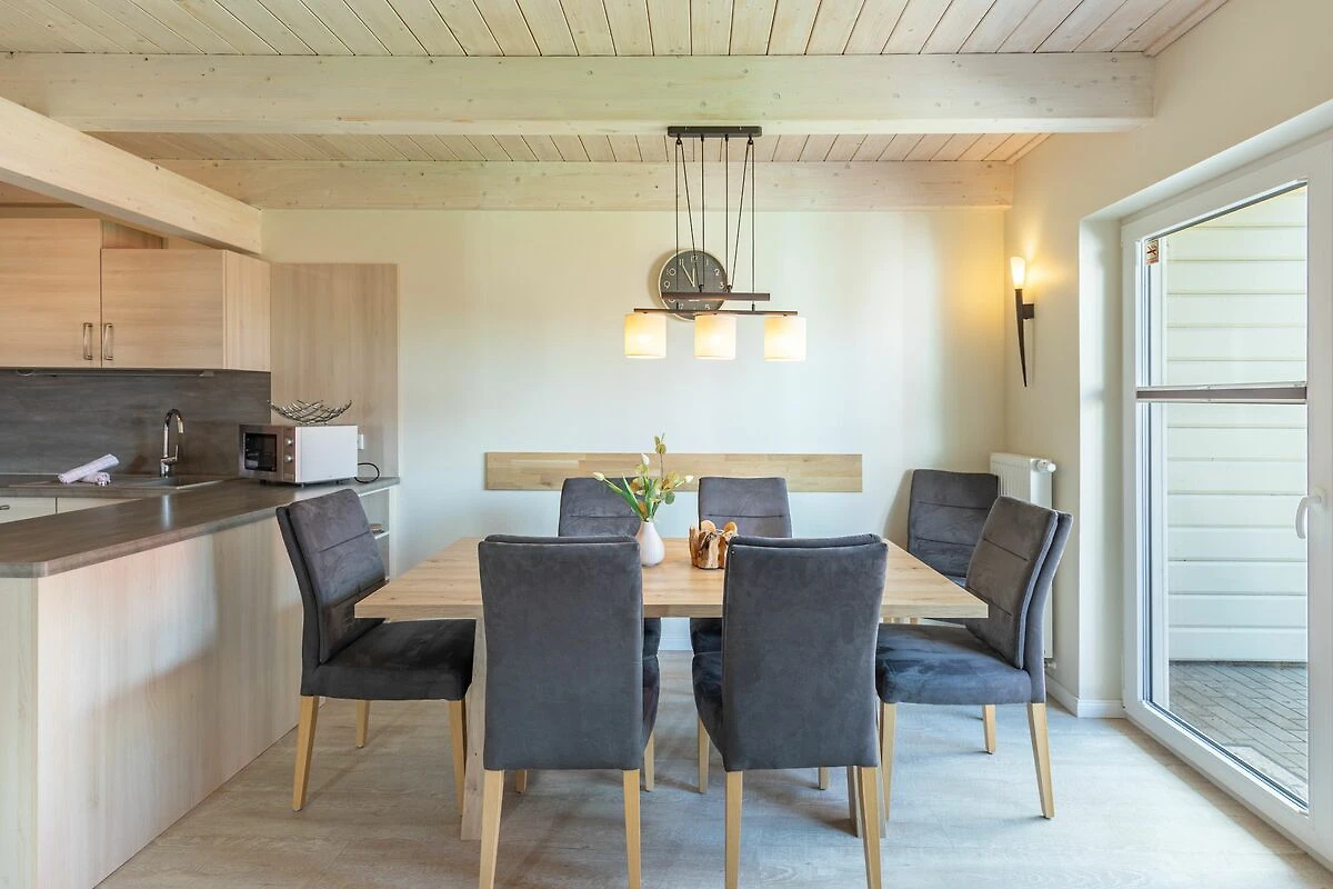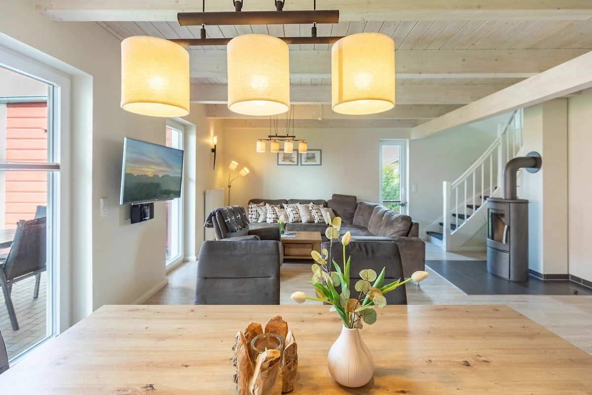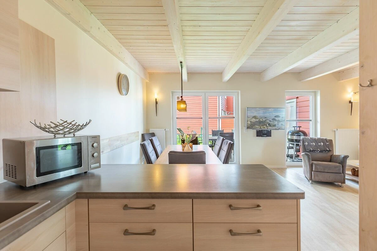 Das 114 qm große Ferienhaus ist modern und exklusiv im skandinavischen Charme eingerichtet. Die offene Küche bietet Ihnen eine exklusive und umfangreiche Ausstattung, die das Herz eines jeden Hobbykochs höher schlagen lässt: Ceranfeld mit 4 Kochplatten, Backofen, Kühlschrank mit ***Gefrierfach, Mikrowelle, Geschirrspüler, Filterkaffeemaschine, und vielem mehr.