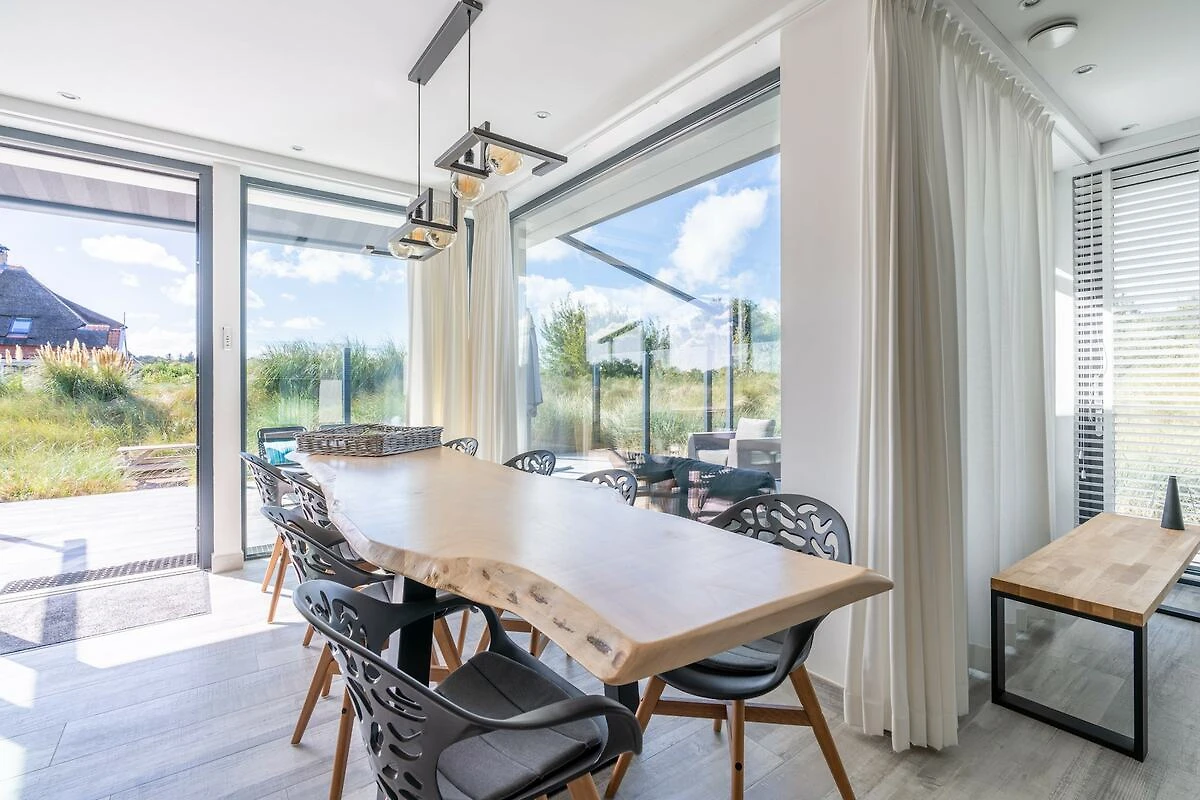 Vom Wohnzimmer aus betreten Sie den wunderschönen, nach Süden ausgerichteten Garten. Umgeben von Dünentälern strahlt der Garten eine wunderbare Ruhe aus. Mehrere Sitzgelegenheiten laden zum Entspannen und Genießen der Sonne und Ruhe ein. Manuell bedienbare Sonnenrollos und ein Trampolin sorgen dafür, dass auch Kinder Spaß haben. Gartenmöbel sind vorhanden.
