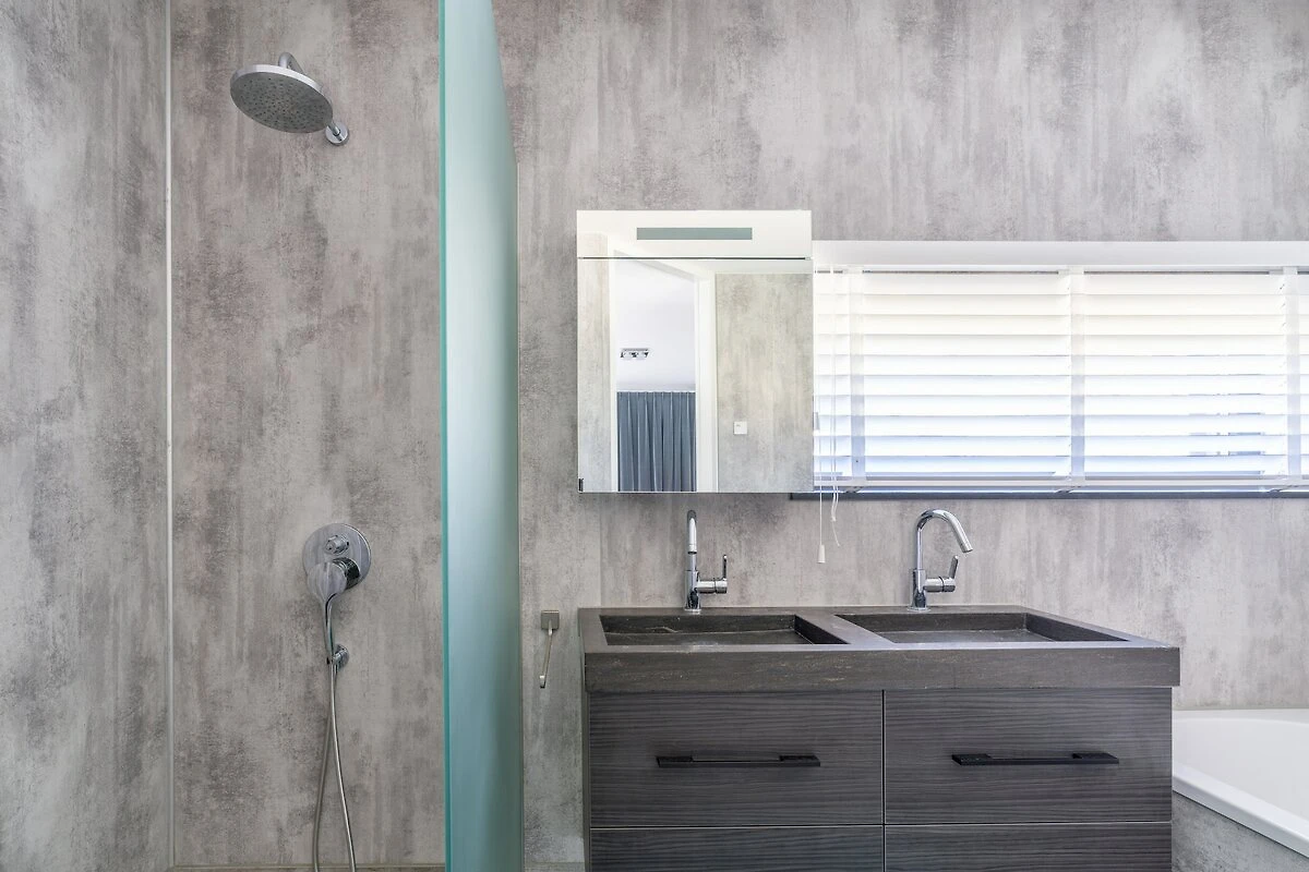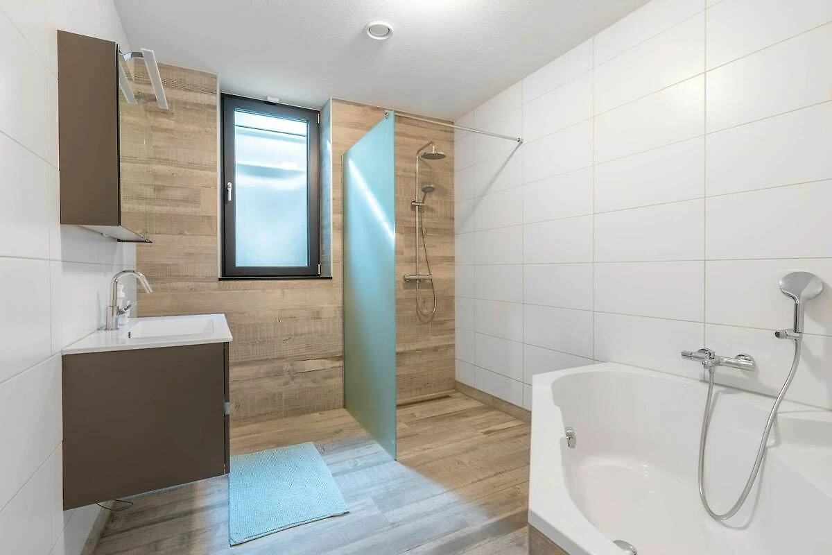 Über die Treppe ins Untergeschoss gelangen Sie zu drei Schlafzimmern und einem schönen Badezimmer. Zwei Schlafzimmer verfügen über ein Doppel-Boxspringbett, das andere über ein französisches Bett. Das Badezimmer ist mit einer ebenerdigen Dusche, einer Badewanne und einem Waschbecken ausgestattet. Im Erdgeschoss befindet sich ein Schlafzimmer mit einem Doppel-Boxspringbett und einem eigenen Badezimmer mit ebenerdiger Dusche, Badewanne, WC und Doppelwaschbecken. Das Schlafzimmer bietet direkten Zugang zur schönen Terrasse und ist vom Wohnzimmer aus auch für Rollstuhlfahrer zugänglich. Im Obergeschoss befinden sich zwei Schlafzimmer und ein Badezimmer. Ein Schlafzimmer verfügt über einen Fernseher, beide sind mit zwei Einzel-Boxspringbetten ausgestattet. Das gepflegte Badezimmer ist mit einer ebenerdigen Dusche, einer Badewanne und einem Waschbecken ausgestattet. Ein besonderer Texel-Touch an den Wänden aller Schlafzimmer macht das Aufwachen jeden Morgen zu einem wundervollen Erlebnis. Auf jeder Etage befindet sich ein separates WC.