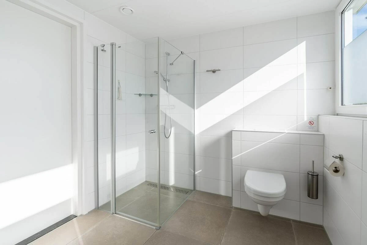 Es gibt drei Schlafzimmer, zwei davon mit TV. Ein Schlafzimmer befindet sich im Erdgeschoss und verfügt über zwei Einzel-Boxspringbetten und ein Waschbecken. Die anderen Schlafzimmer befinden sich im Obergeschoss und sind beide mit zwei Einzel-Boxspringbetten ausgestattet. Das schöne, helle Badezimmer ist mit einer ebenerdigen Dusche, einem Doppelwaschbecken und einer Toilette ausgestattet. Eine separate Toilette befindet sich im Erdgeschoss.