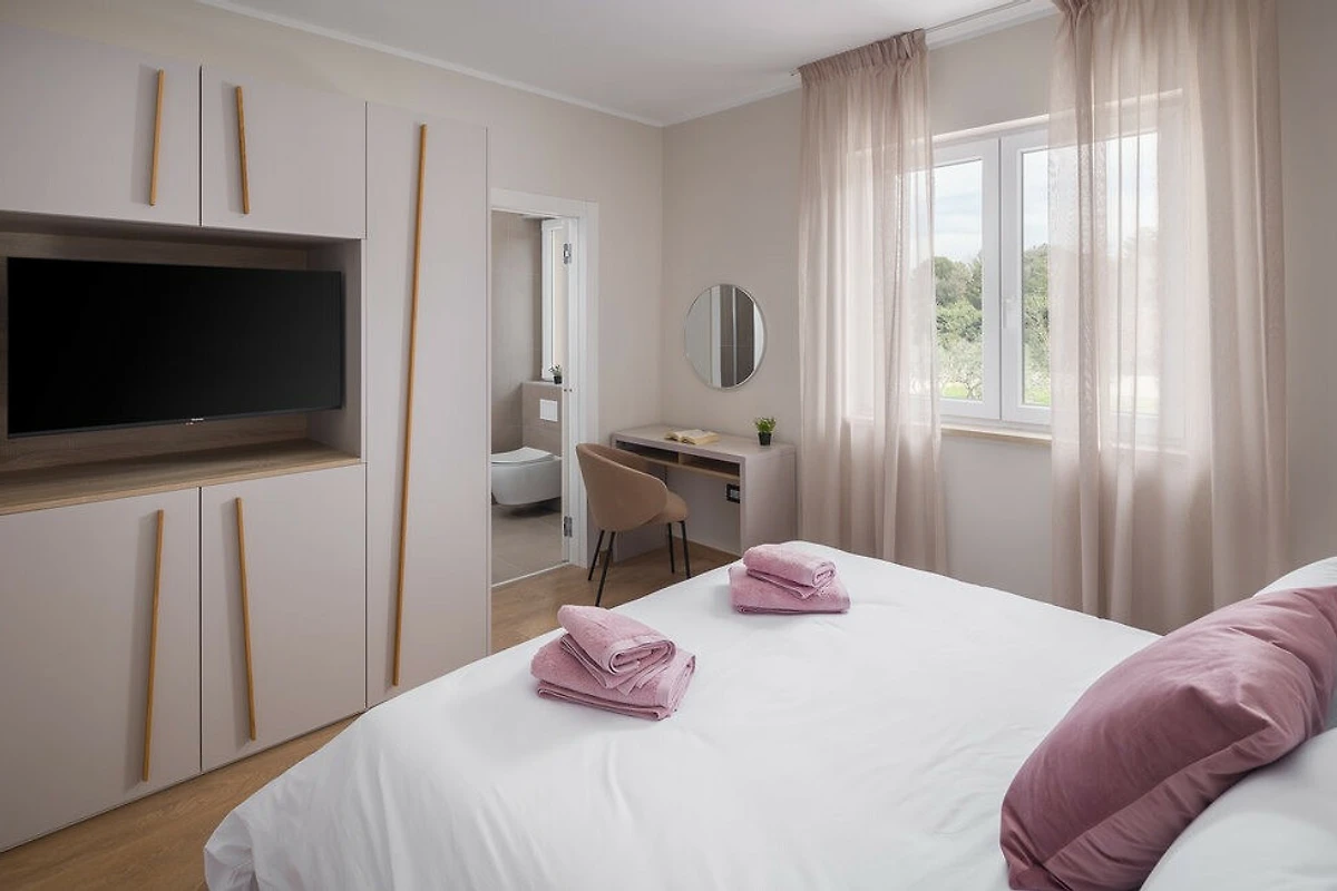 Haustierbesitzer werden erfreut sein zu erfahren, dass bis zu 2 Tiere willkommen sind. Die Villa liegt günstig, nur 5,2 km vom Valbandon-Strand, 3,5 km vom Stadtzentrum Pulas und 9,6 km vom Flughafen Pula entfernt. Rauchen ist innerhalb der Unterkunft nicht gestattet.