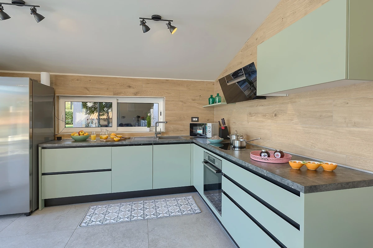 Die Villa verfügt über beeindruckende 5 Badezimmer mit Dusche, die jeweils Komfort und Privatsphäre für alle Gäste gewährleisten. Die voll ausgestattete amerikanische Küche ist ein Traum für kulinarische Enthusiasten und bietet Induktionskochen sowie eine umfassende Auswahl an Geräten, darunter Kühlschrank, Gefrierschrank, Geschirrspüler, Ofen, Mikrowelle, Kaffeemaschine sowie ein komplettes Set an Küchenutensilien und Geschirr.