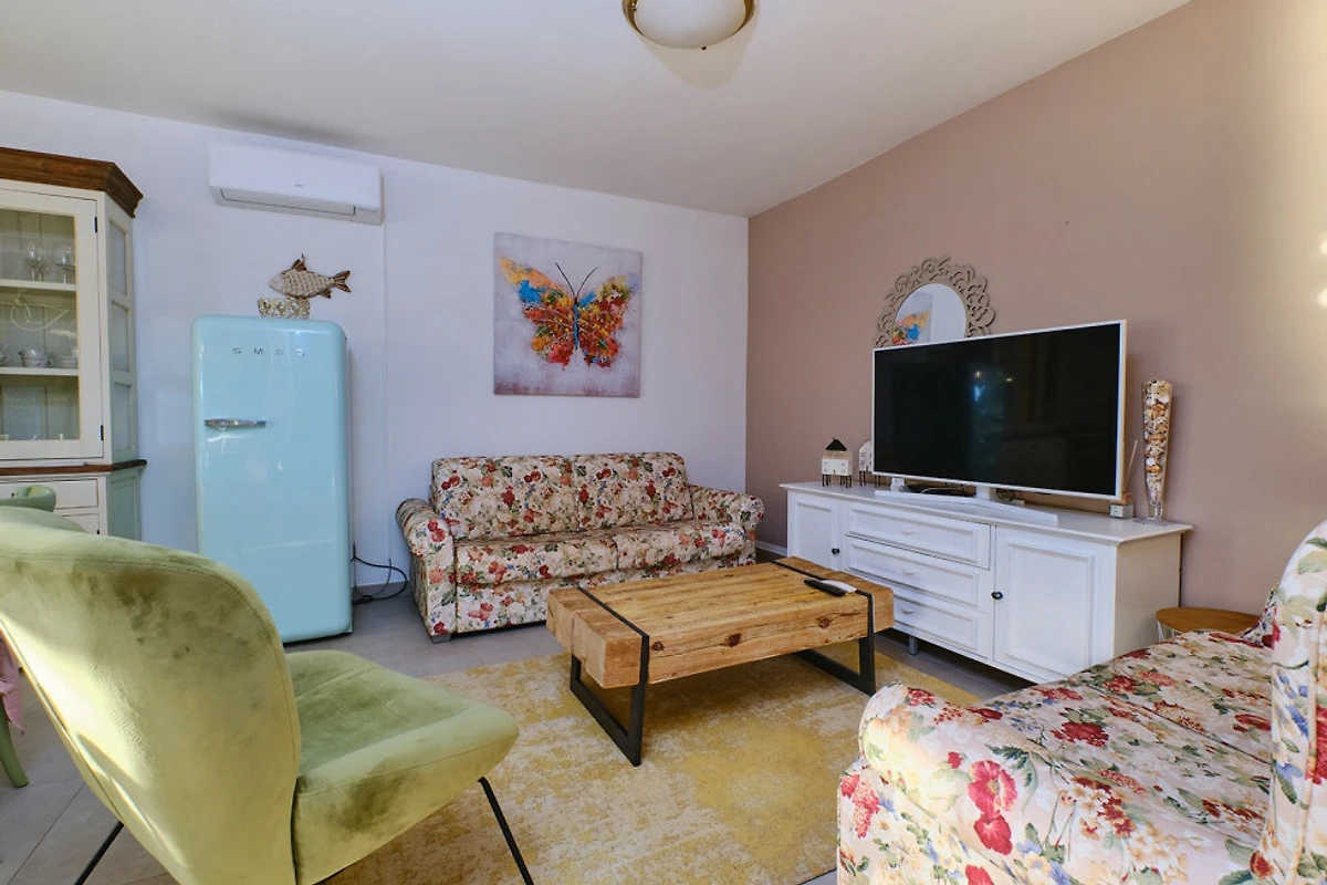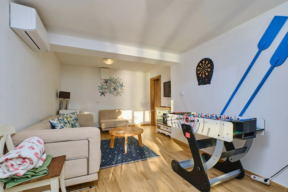 Geniessen Sie moderne Annehmlichkeiten mit Klimaanlage, WLAN und 2 Fernsehern mit Satellitenkanälen. Die Villa bietet 3 private Aussenparkplätze direkt neben dem Gebäude, was An- und Abreise problemlos gestaltet.