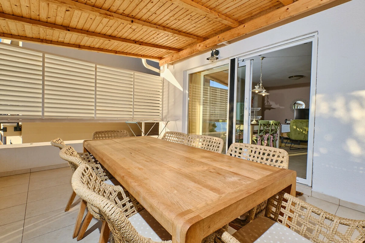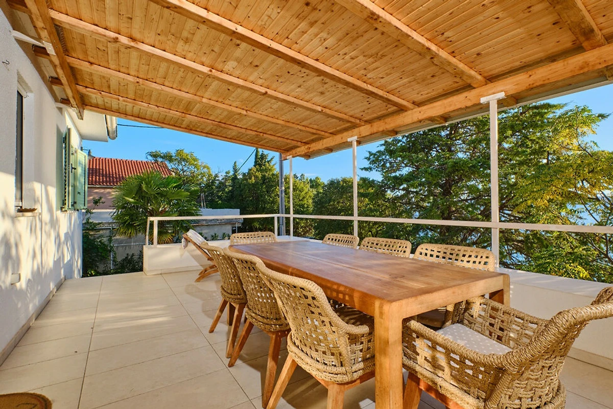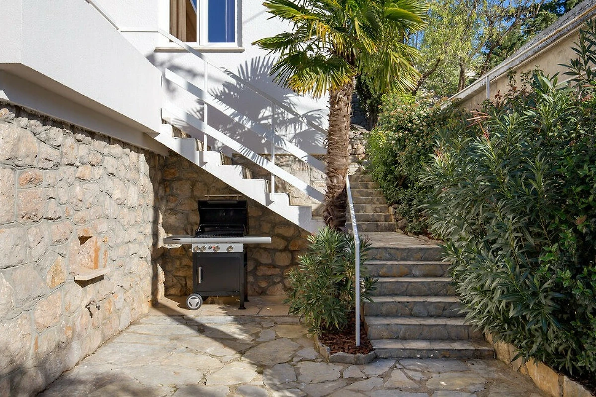 Naturliebhaber werden die Eigenschaften der Villa lieben, einschliesslich Garten, eingezäuntem Grundstück, Terrasse und Grillbereich. Die Immobilie liegt nur 50 Meter von einem wunderschönen Felsstrand entfernt und bietet atemberaubende Meer- und Gartenblicke. Die Lage ist wunderbar ruhig und hell, perfekt für einen erholsamen Urlaub.