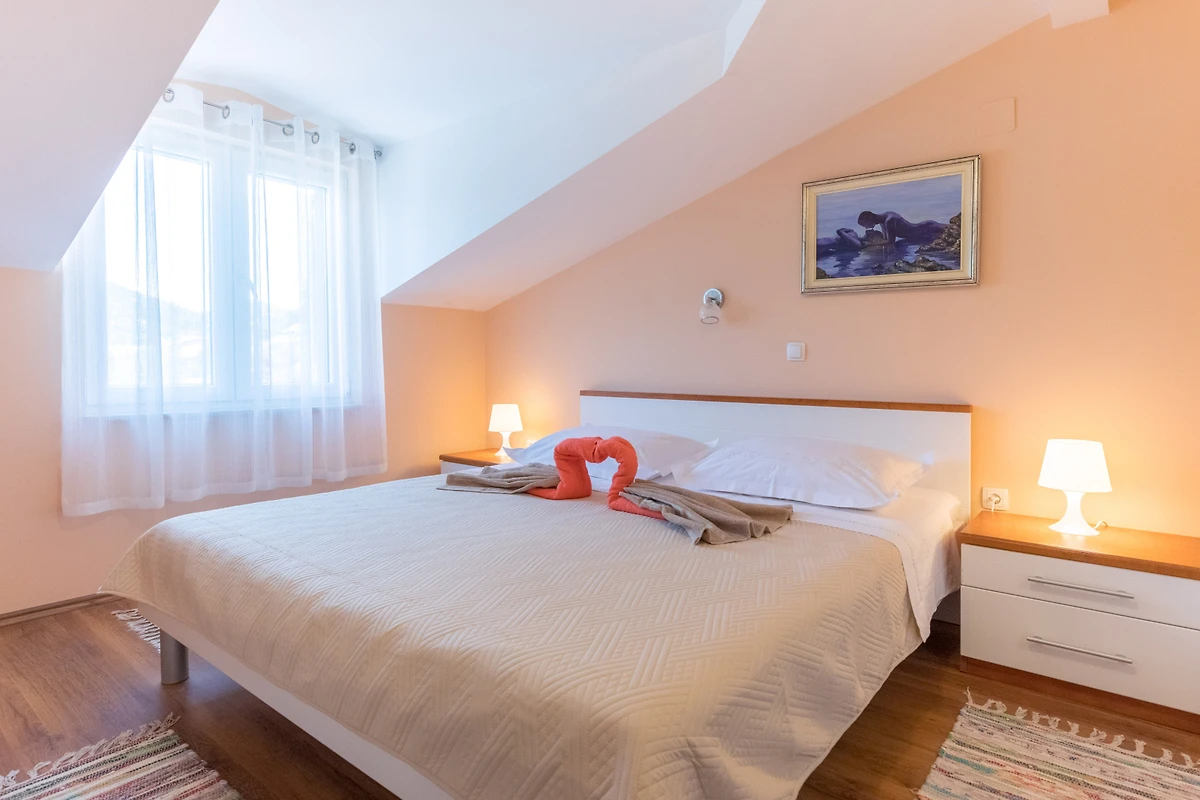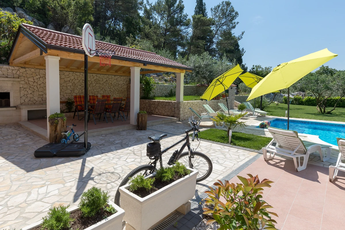 Die Villa in Bacina hat 4 Schlafzimmer und Platz für 8 Personen. Die Villa ist komfortabel, sehr hell und 210 m² gross. Sie hat Blick auf die Berge und den Garten. Die Immobilie befindet sich 1 km von der Stadt Ploce entfernt, 2 km vom Sandstrand Bacina, 4 km vom Supermarkt Ploce, 120 km vom Flughafen Dubrovnik-Cilipi. Das Haus liegt in einer ruhigen Nachbarschaft in einer schönen ländlichen Gegend.Die Unterkunft ist mit folgenden Gegenständen ausgestattet: Garten, eingezäunter Garten, Terrasse, Waschmaschine, Grill, Kamin, Bügeleisen, Internet (WLAN), Haartrockner, Fitnessstudio / Fitnesscenter, klimatisiert, privater Swimmingpool, Garage im selben Gebäude, 1 Fernseher, Satelliten-TV.In der offenen Küche mit Gasherd sind Kühlschrank, Gefrierschrank, Geschirrspüler, Geschirr/Besteck, Küchenutensilien, Kaffeemaschine und Toaster vorhanden.