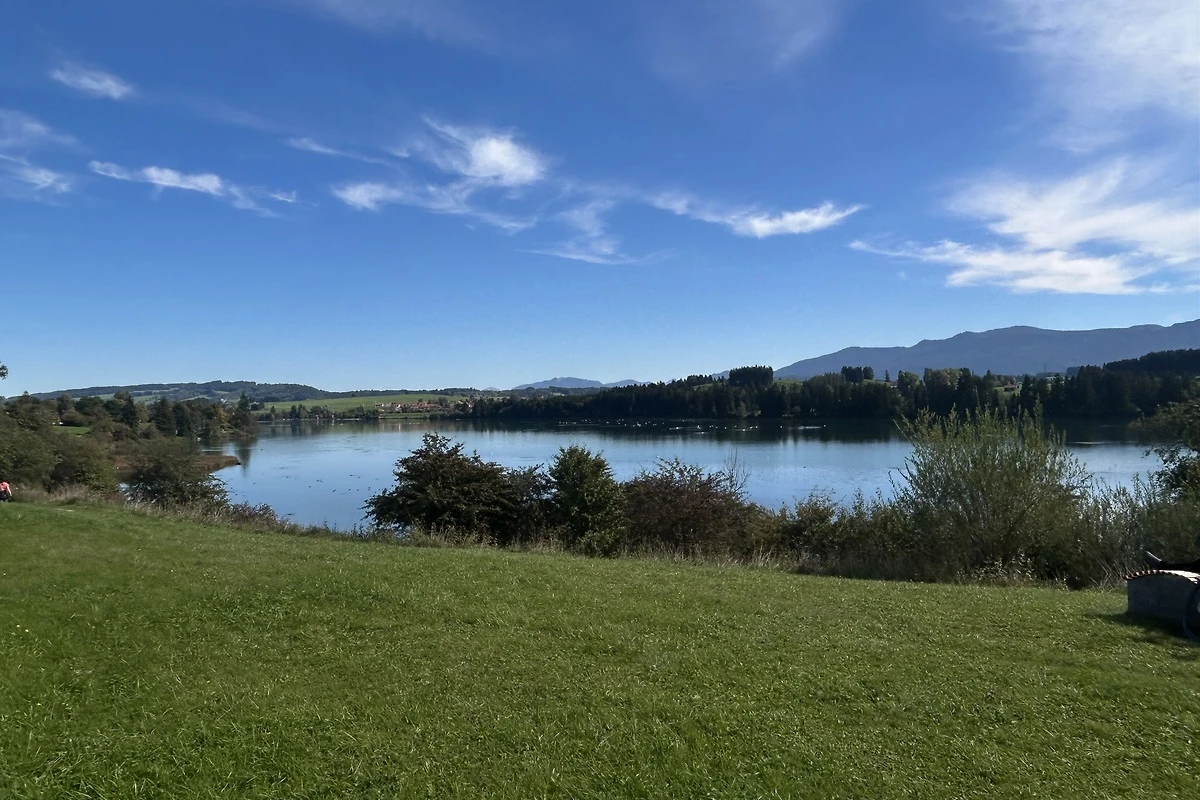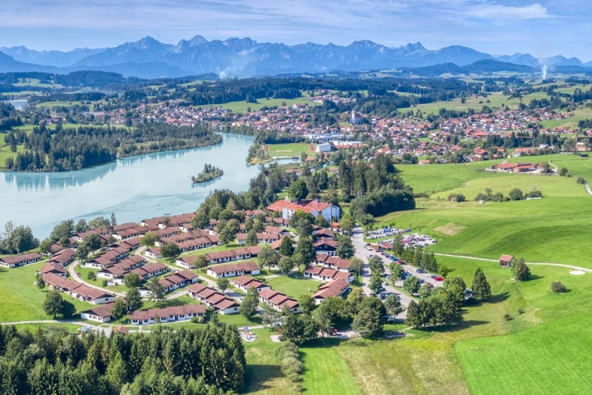 Genießen Sie Ihren Urlaub auf erhöhter Ebene im Feriendorf "Hochbergle", direkt "über" dem Lechsee in Lechbruck im schönen Allgäu, umgeben von Wiesen und Feldern mit Bergblick, nur wenige Schritte entfernt vom Lechsee.