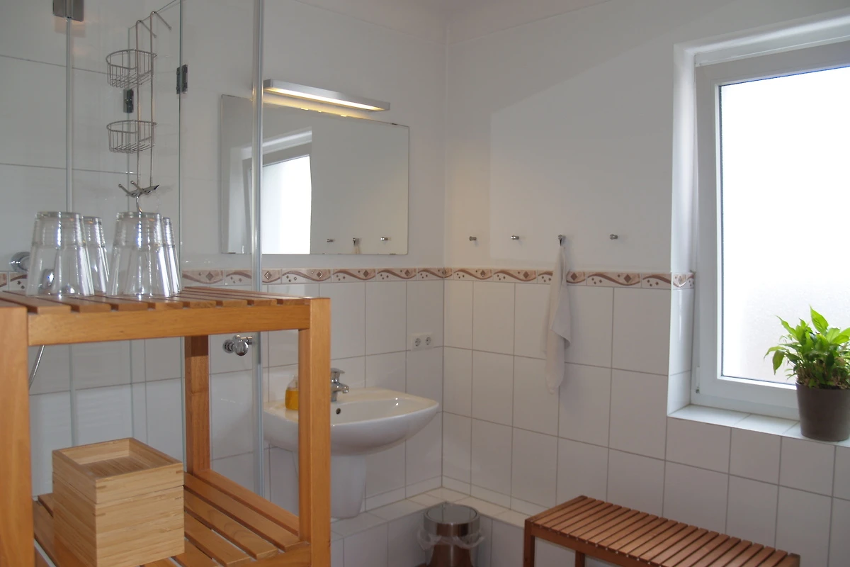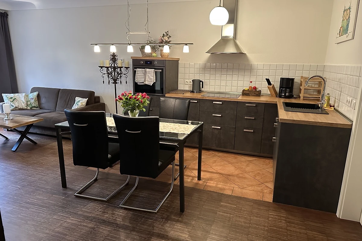 Unsere Kaminfeuer ist romantischte Wohnung. In jedem Schlafzimmer ein Doppelbett. In dem hinteren haben wir ein Lichternetzt im Himmel. Das Bad hat eine angenehme Größe mit einen großen Tageslichtfenster. Der echte Kamin macht im Wohnzimmer eine wohlige Wärme. Im Sommer kann man draußen auf dem kleinen Balkon sitzen und ein Schluck Wein genießen. Die Küche ist voll ausgestattet in den Wohnbereich integriert. So ist man immer dabei. Die Ferienwohnung ist im ersten Stock neben der Classic. Für größere Gruppen sehr interessant da beide den gleichen Aufgang haben und man die Ferienwohnungen gut so miteinander nutzen kann. Auch hier sind beide Schlafzimmer baulich und räumlich getrennt. Wohnraumschutznummer: 53-0012581-19