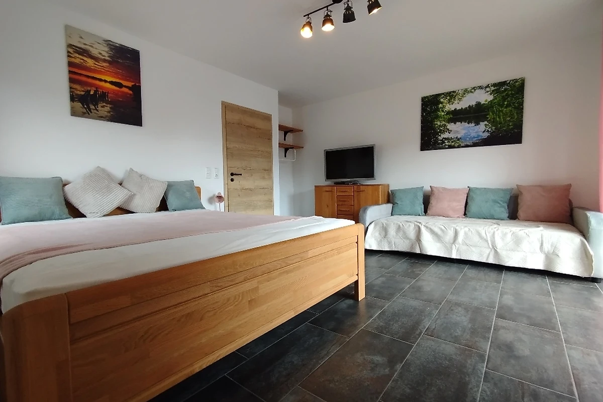 Nur ein paar Schritte entfernt liegt der wunderschöne Tannenhausener Badesee – mit allem, was das Urlaubsherz höherschlagen lässt: Zwei entspannte Strandbars, Wakeboardanlage, ein Aquapark für Actionliebhaber, SUP-Boards, Tretboote und Strandkörbe zum Ausleihen – und als besonderes Highlight: eine exklusive Badebucht nur für Feriengäste der Siedlung. Hier baden Sie in aller Ruhe, abseits vom Trubel.