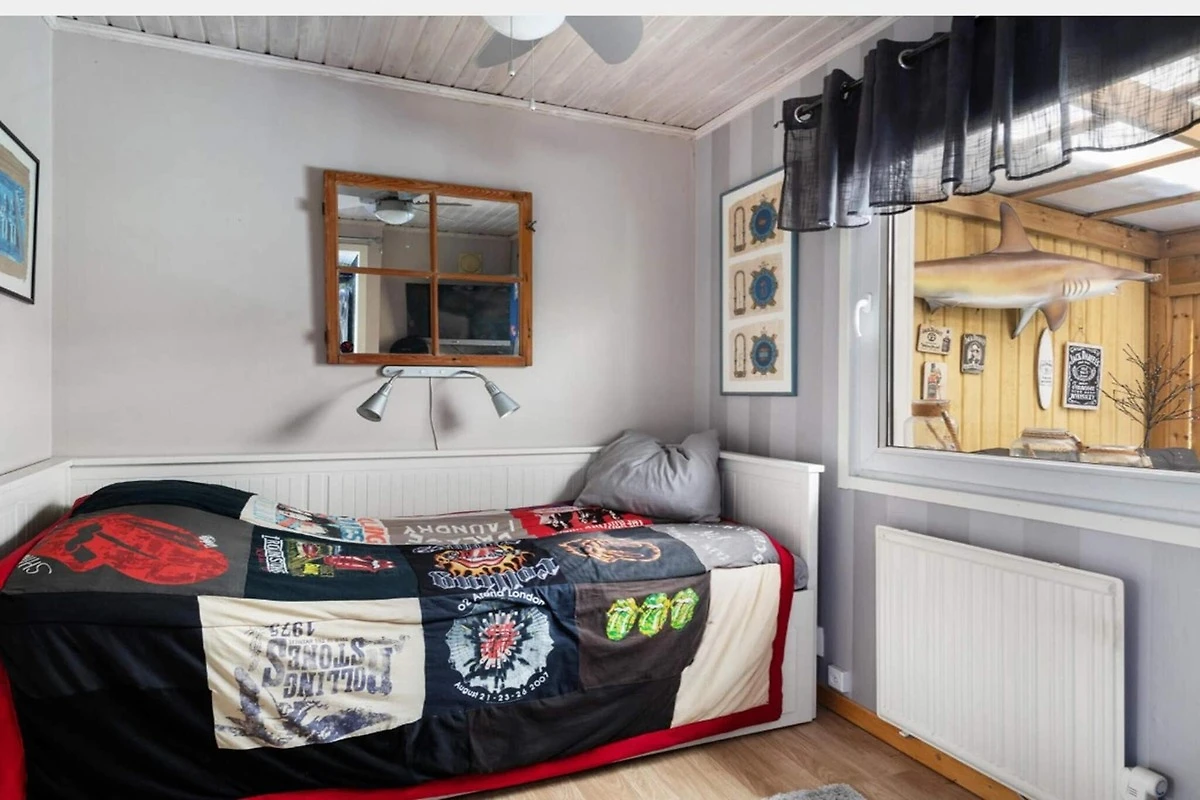 Willkommen in diesem schönen, naturbelassenen Ferienhaus in Bergshamra, Norrtälje, in erhöhter, abgeschiedener Lage, nur einen Steinwurf vom See entfernt! In ruhiger und erholsamer Umgebung wohnen Sie in einem traditionellen Ferienhaus mit verschiedenen Aufenthaltsbereichen im Innen- und Außenbereich sowie mehreren überdachten und offenen Terrassenflächen. Genießen Sie ein warmes und angenehmes Bad im Whirlpool mit Blick in die wunderschöne Natur mit Vogelgezwitscher! Sie werden von einer überdachten Terrasse und einem verglasten Außenraum mit einer großen Sitzgruppe begrüßt. Weiter im Haus finden Sie eine Küche mit guten Kochmöglichkeiten und Geräten wie einer Eismaschine. Von hier aus gelangen Sie auf eine überdachte Terrasse nach vorne mit herrlichem Blick auf die Umgebung, die laut Eigentümer eine wunderbare Morgenveranda ist. Es gibt drei Schlafzimmer im Haus; eines mit Doppelbett, die beiden anderen mit jeweils einem Schlafsofa für zwei Personen. Im Wohnzimmer gibt es eine gemütliche Sitzecke, einen Fernseher und einen Holzofen. Das helle Badezimmer mit Dusche und direktem Zugang zum Whirlpool direkt vor der Tür. Wunderschönes grünes Naturgrundstück mit teilweise Rasenfläche und Bergblick. Oben am Berg können Sie im sogenannten „Slogboden“ überdacht sitzen. Unten auf der Wiese gibt es einen weiteren Sitzbereich auf einer schönen Holzterrasse mit Außeninseln, Sonnenliegen und einem Bällekorb, in dem Sie für ein gemütliches Lagerfeuer sorgen können. Sie wohnen hier in einer ruhigen Gegend mit Zugang zu einem schönen Badesee, den Sie in wenigen Gehminuten erreichen. Auch alles, was der Stockholmer Schärengarten zu bieten hat, ist bequem zu erreichen. Im Zentrum von Norrtälje gibt es alles, was Sie brauchen und mehr. Dort können Sie am Kanal entlang spazieren, gut essen und in nette kleine Geschäfte gehen.