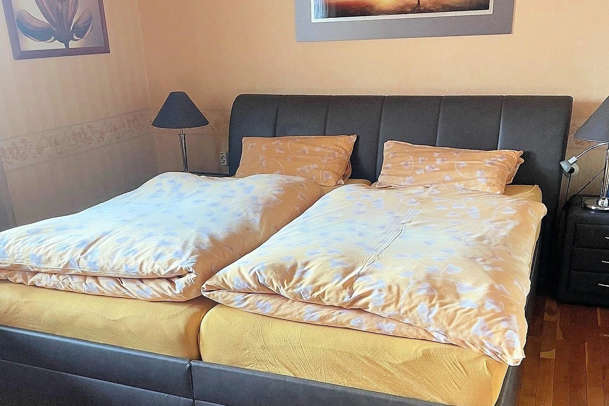 Ein zusätzliches Zimmer im Erdgeschoss, ausgestattet als Wohn- und Schlafzimmer mit einer Schlafcouch, bietet zwei weiteren Gästen die Möglichkeit bequem zu übernachten oder sich zurückzuziehen.
