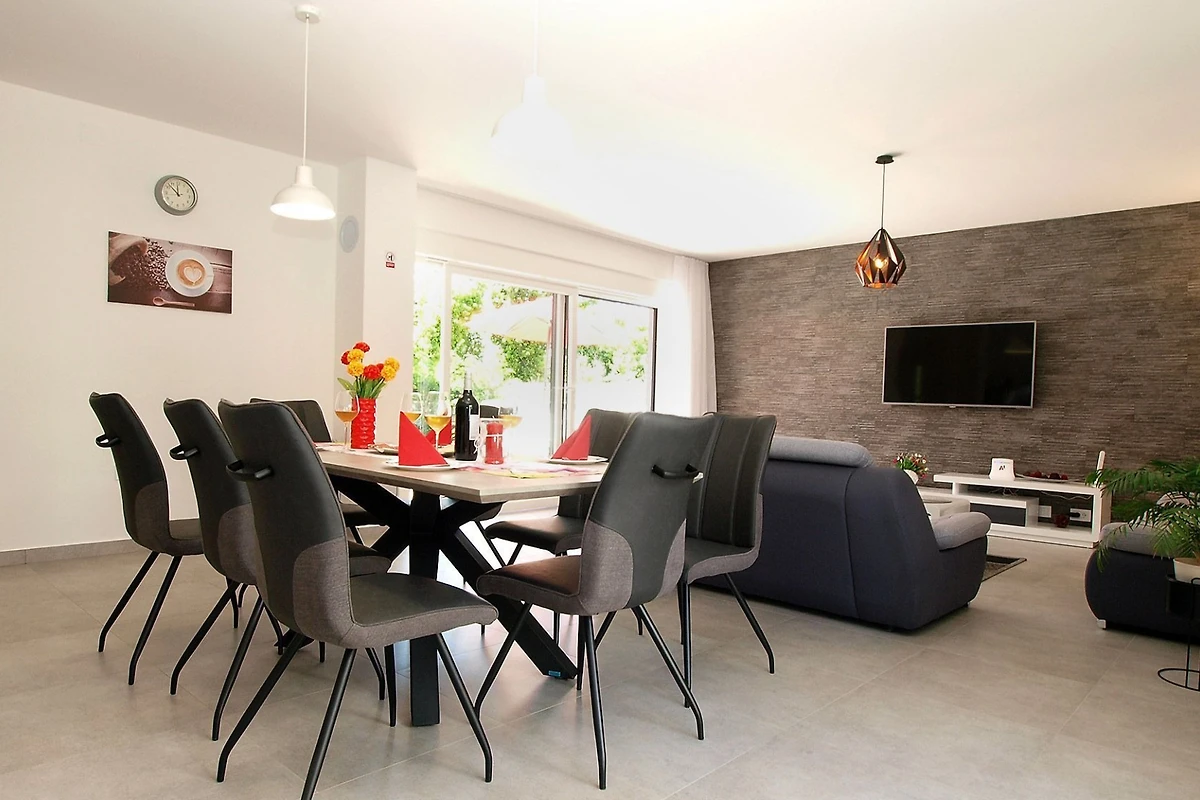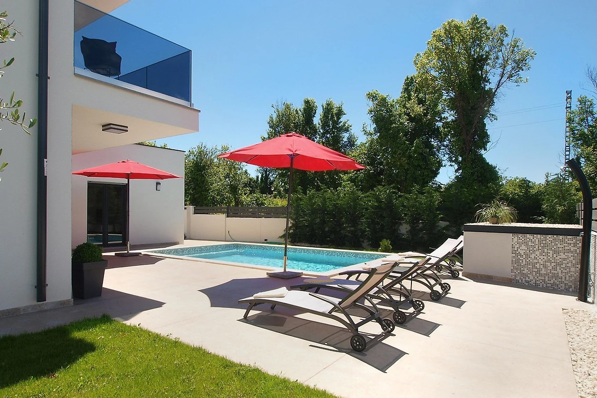 Entdecken Sie Villa Ema, einen charmanten ländlichen Rückzugsort, der in der malerischen Landschaft von Ližnjan eingebettet ist und ideal für Familien und Paare ist, die einen friedlichen Urlaub suchen. Diese moderne und wunderschöne Villa bietet einen komfortablen Aufenthalt mit atemberaubenden Garten- und Poolausblicken.