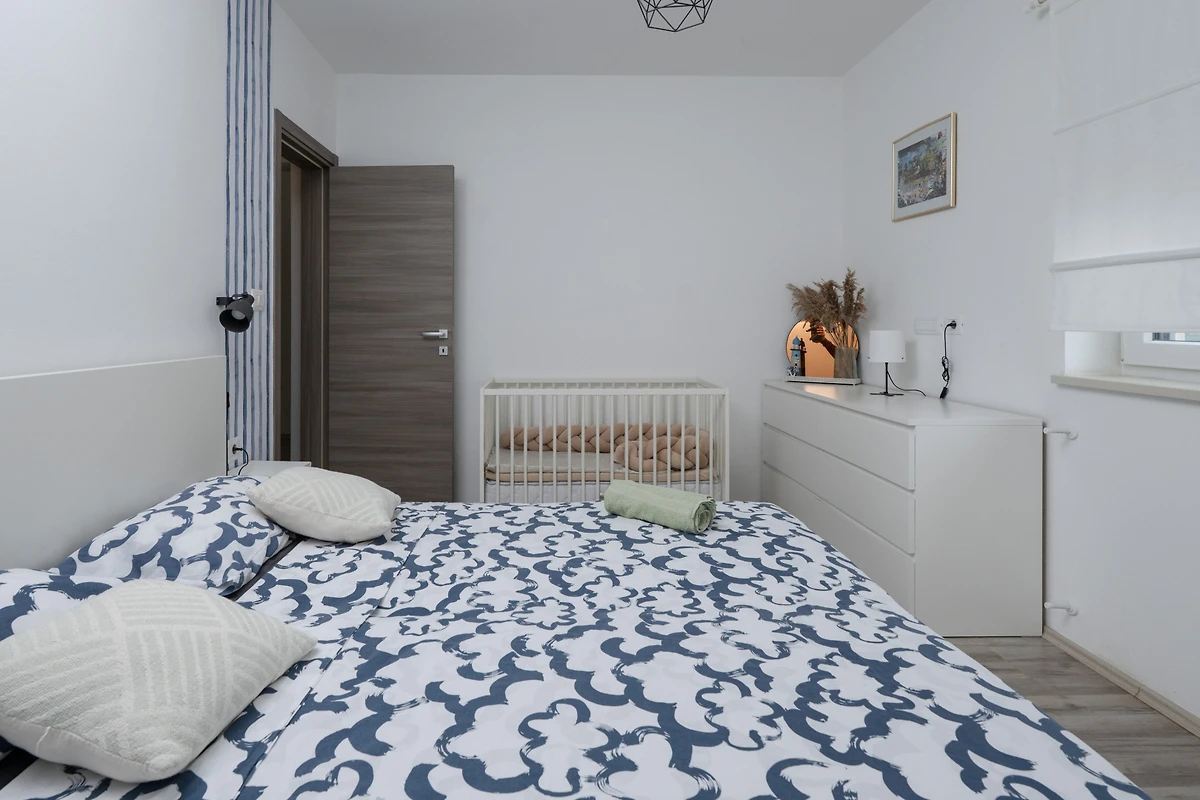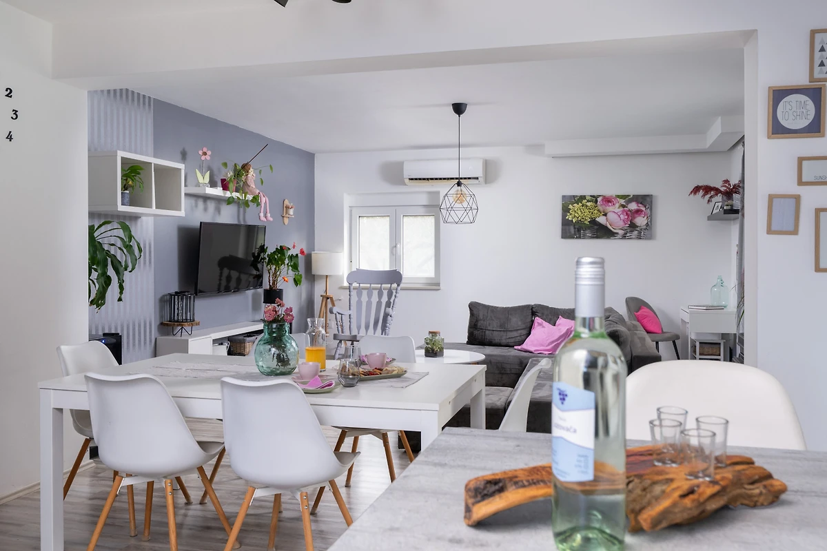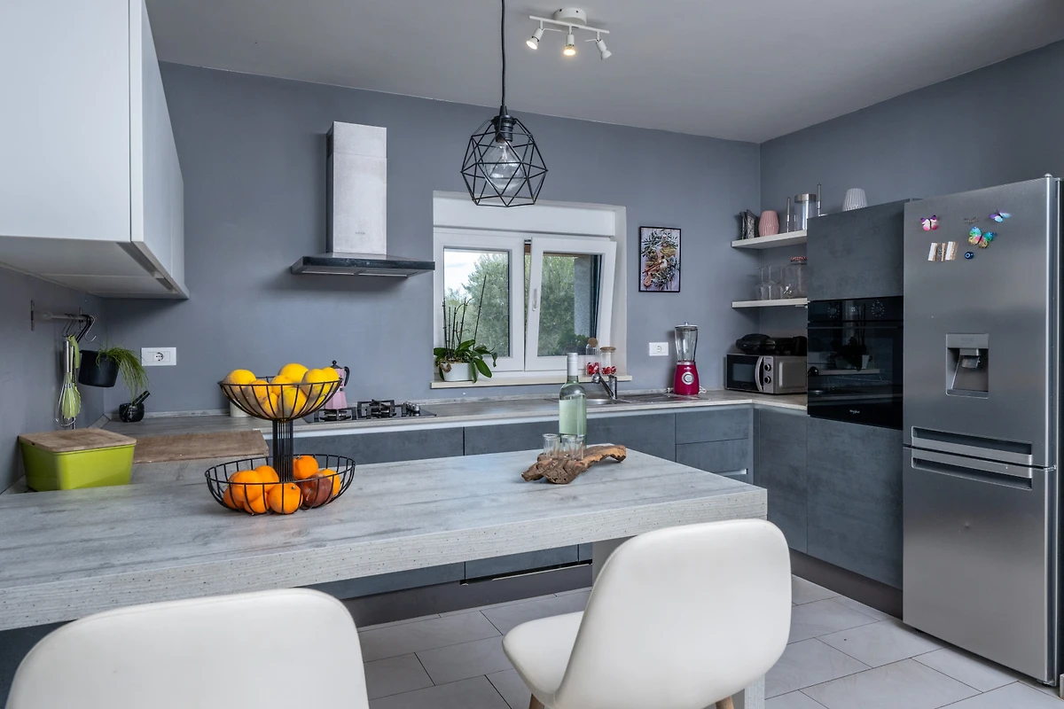 Entdecken Sie eine entzückende Ferienwohnung in der charmanten Stadt Fažana, perfekt gestaltet für Familien und Paare, die einen komfortablen und erholsamen Urlaub suchen. Dieses geräumige 120 Quadratmeter grosse Haus bietet eine einladende Atmosphäre mit Platz für bis zu 6 Gäste und verfügt über 3 gut ausgestattete Schlafzimmer mit einer Mischung aus Doppelbetten und Einzelbetten.