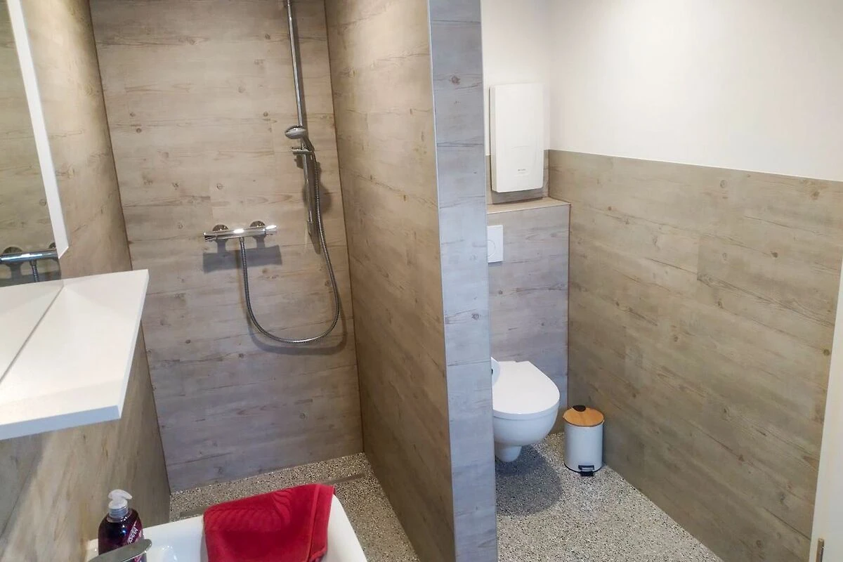 Die Ferienwohnung Dünenstrasse befindet sich in einem Anbau auf dem Hinterhof des Vermieters und eignet sich optimal für Monteure. Die 32 m² grosse Ferienwohnung ist ebenerdig und über einen geräumigen Flur erreichst du das kombinierte Wohn-Schlafzimmer und die Küche. Das Wohn-Schlafzimmer verfügt über 2 separat stehende Einzelbetten (90x200) einen Kleiderschrank sowie Sat-TV. Die Küche ist komplett ausgestattet mit mit Kühl-Gefrier-Kombination, Herd mit Backofen, Wasserkocher, Toaster etc. Über die Küche gelangt man in das Bad mit ebenerdiger Dusche, Waschbecken, Waschmaschine und WC.
