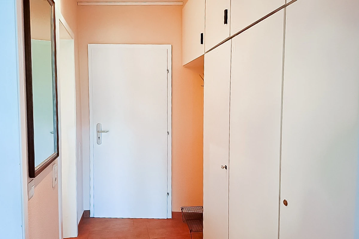 Im Eingangsbereich befinden sich der eingebaute Kleiderschrank und die Garderobe. Von hier aus haben Sie Zugang zu allen Räumen.