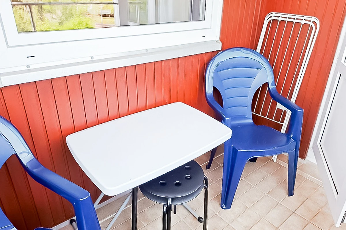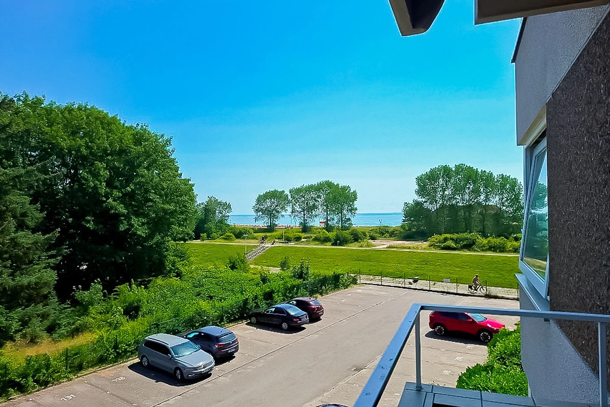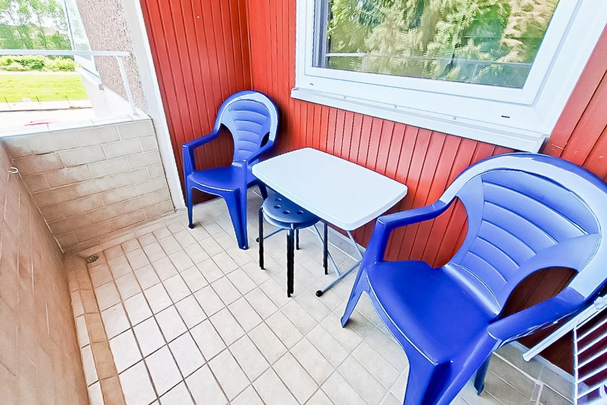 Auf dem möblierten Ostbalkon lässt es sich mit Blick auf die Ostsee gemütlich sitzen.