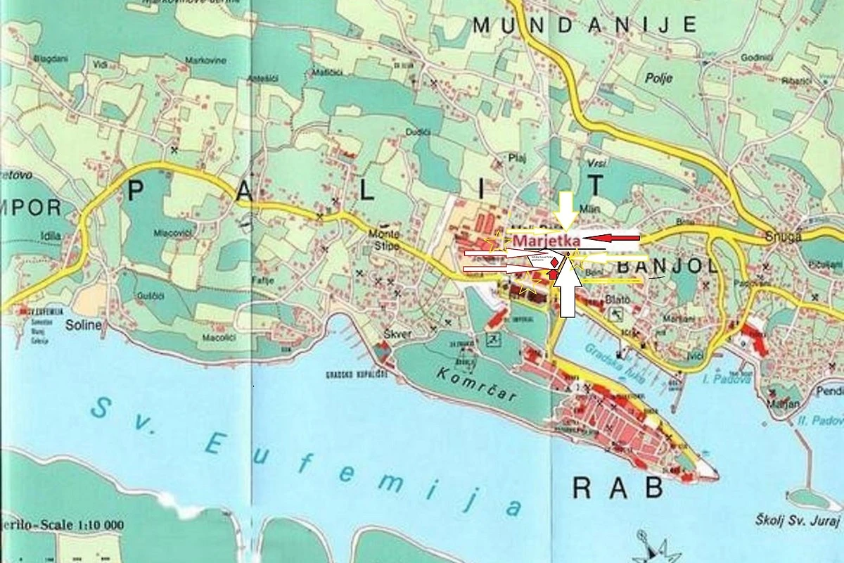 -in einer ausgezeichneten Lage, in der Nähe der attraktiven Stadt Rab, aber gleichzeitig ruhig und zugänglich, in der Nähe des Meeres, des Yachthafens Rab, des Naturparks Komrčar, des Sportzentrums, der Geschäfte, des Fischmarkts, Banken, Post, touristische Dienstleistungen: Restaurants, Cafés, Bars, Pizzeria, alle ca. 200m entfernt. Es befindet sich im Erdgeschoss einer schönen Villa mit ausreichend Platz zum Parken von Autos und Anhängern für Boote, Terrassen und Garten, mit mediterranen Pflanzen und Obstbäumen, ausgestattet mit Tischen, Stühlen, Grill, Schaukeln für Kinder, Dusche Gartenmöbel, Liegestühle, Sonnenschirme. Die Wohnung bietet Platz für bis zu acht Personen, hat eine Fläche von 110 Quadratmetern, unabhängigen Eingang, überdachte Veranda, Flur, 3 Schlafzimmer mit jeweils eigenem Bad, gut ausgestattete Küche, ausgestattet mit einem Herd mit vier Brennern, Elektroherd , Doppelwaschbecken, Waschmaschine, Geschirrspüler, Kühlschrank mit Gefrierfach, Set Töpfe und Besteck, Gläser, Kaffeemaschine, Mikrowelle, Wasserkocher, Wasserkocher, Toaster. Sat TV, WiFi, Klimaanlage.