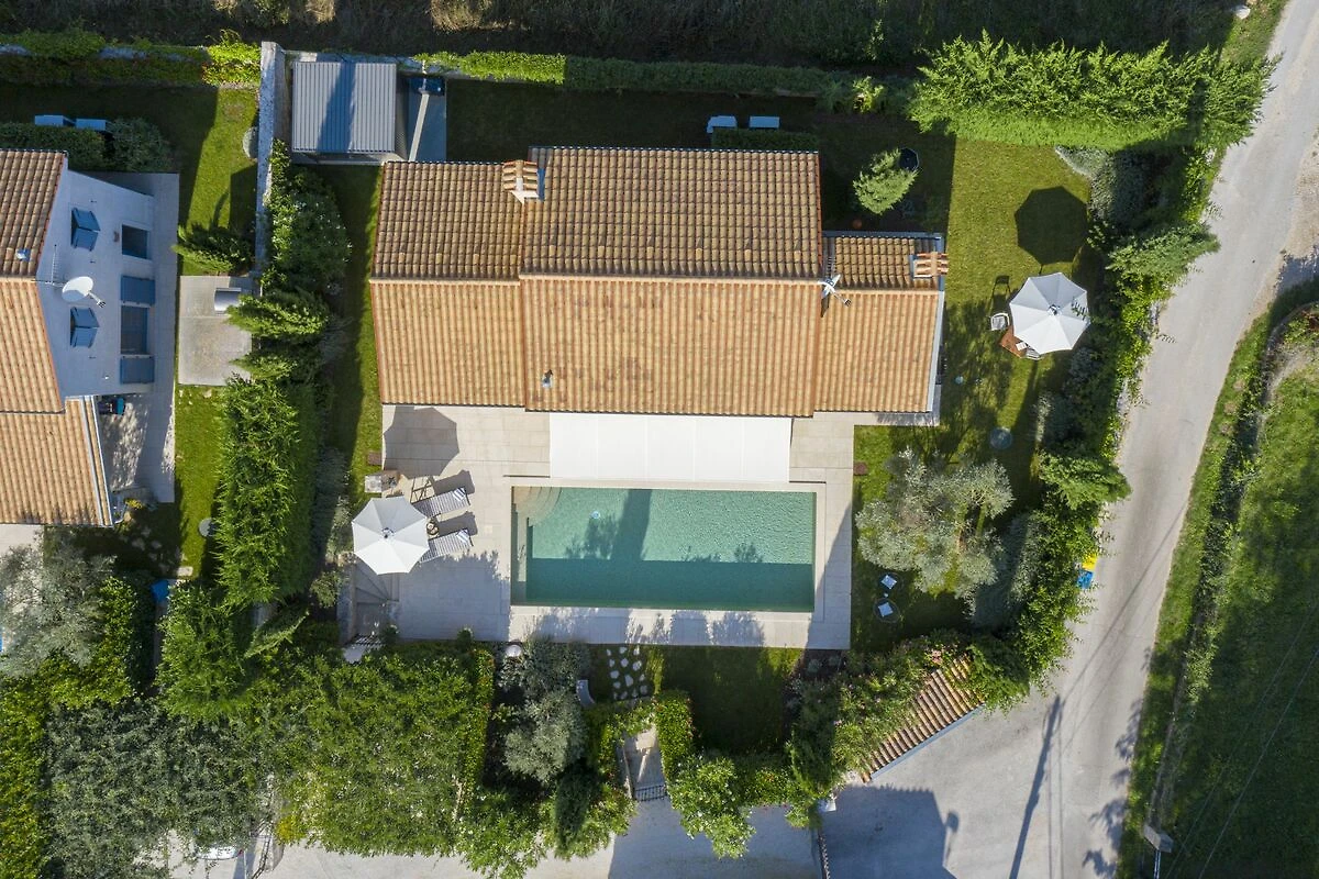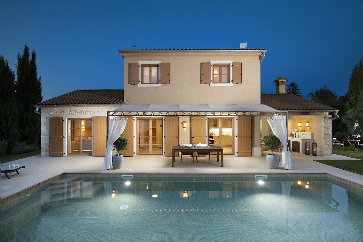 Die Villa Vento di Mare in der Nähe von Rovinj verbindet natürlichen Charme mit luxuriösen Annehmlichkeiten. In der ländlichen Umgebung des istrischen Dorfes Smoljanci genießen Sie absolute Ruhe und Entspannung.