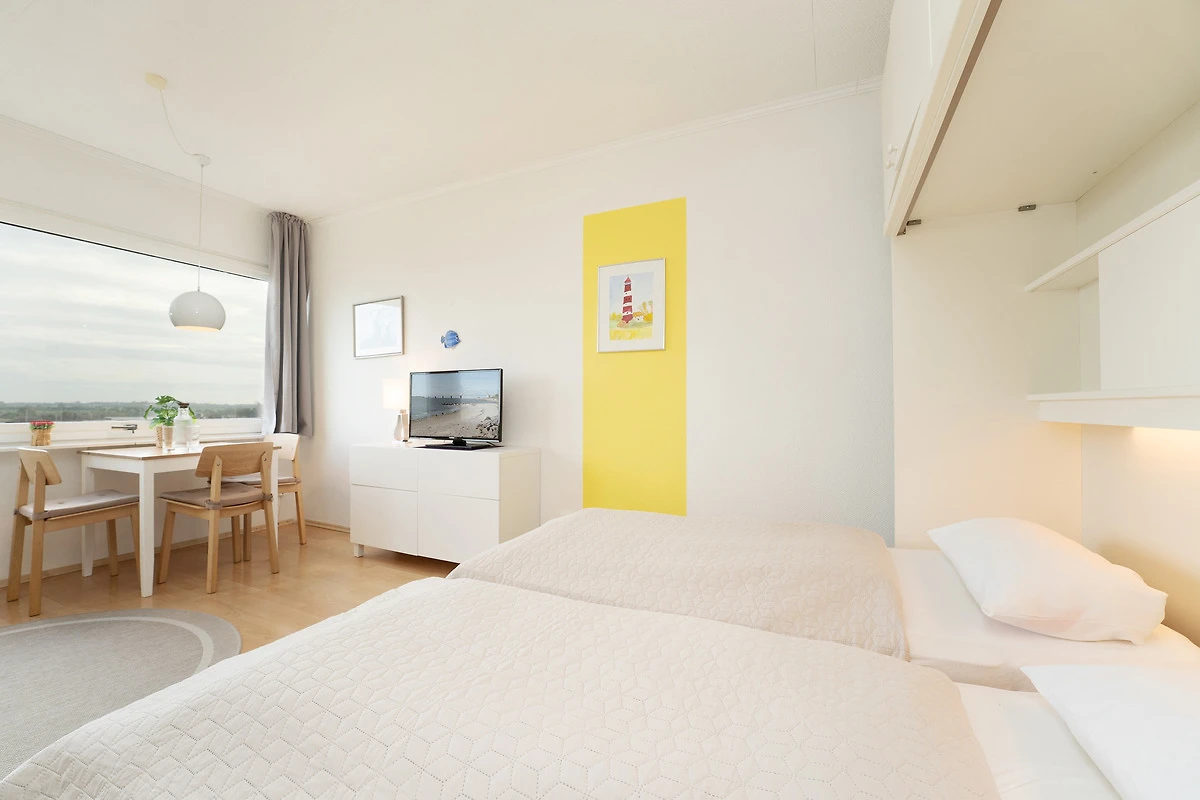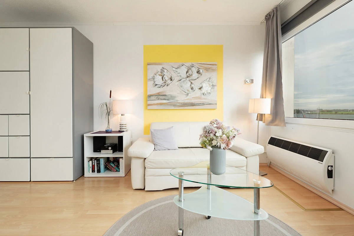Grosszügige 1-Zimmer-Ferienwohnung in Fehmarn OT Burgtiefe-Südstrand mit 25 m² Wohnfläche und Meerblick für bis zu 3 Personen.