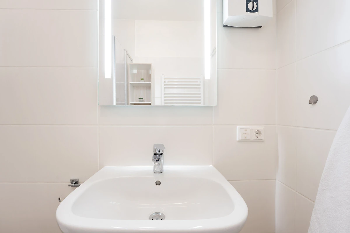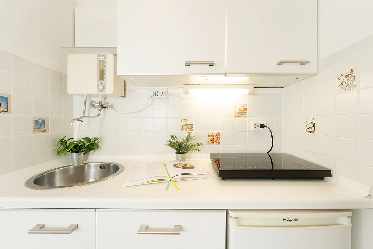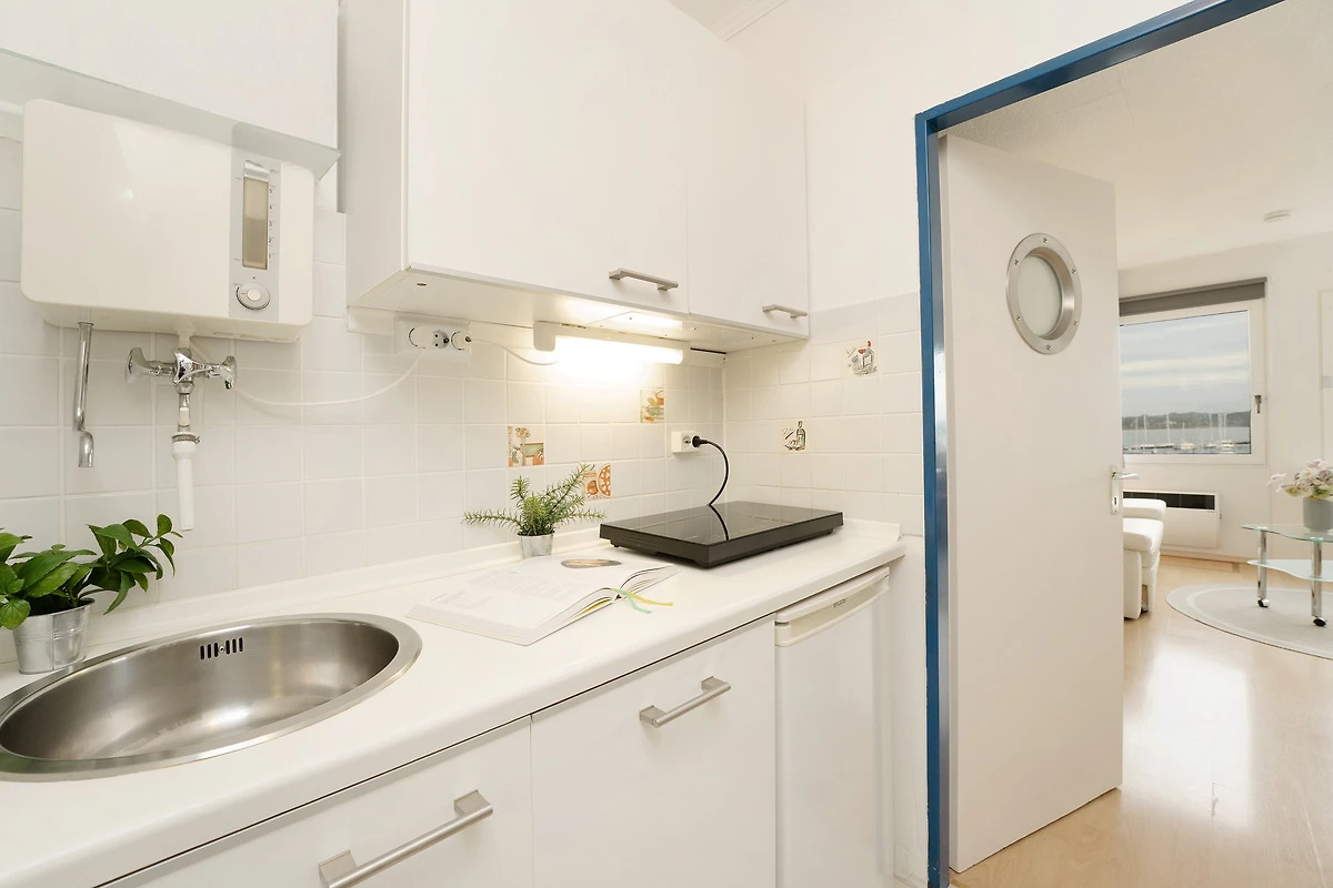 Das helle Apartment empfängt Sie mit einem gemütlichen Wohn- und Schlafbereich, der mit einem bequemen Schrankbett, einem Schlafsofa und einer Sitzecke ausgestattet ist. Sonnige Stunden lassen sich am besten im dazugehörigen Strandkorb am Südstrand geniessen. In der kompakten Küche finden Sie alles, was Sie für die Selbstversorgung benötigen: ein Kochfeld, Kühlschrank mit Gefrierfach, Kaffeemaschine, Wasserkocher und Toaster machen die Zubereitung Ihrer Mahlzeiten komfortabel. Der angrenzende Essbereich lädt zum gemeinsamen Geniessen ein. Das Badezimmer verfügt über Dusche, WC und beheizbarem Handtuchhalter.