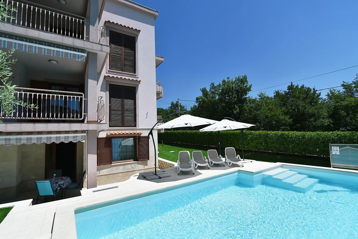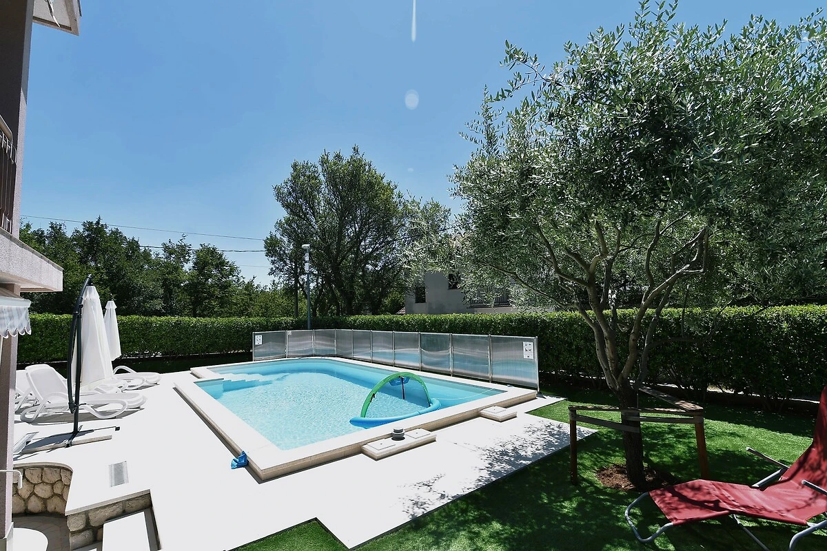 Wunderschönes Ferienhaus in Jadranovo mit privatem Pool, ideal für einen erholsamen Urlaub am Meer. Das Haus bietet Platz für bis zu 8 Personen und verfügt über 4 geräumige Schlafzimmer, jedes mit eigenem Bad für höchsten Komfort. Im Außenbereich befindet sich eine schön gestaltete Terrasse mit Essbereich, auf der Gäste ihre Mahlzeiten im Freien am Pool genießen können. Perfekt für Familien oder Freunde, die einen ruhigen Aufenthalt in der Nähe des Meeres und des Zentrums von Jadranovo suchen.