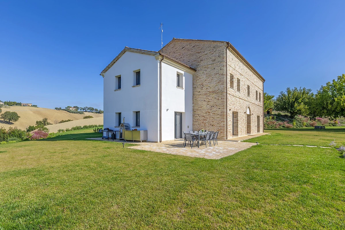 Mitte in den Hügeln der Marken, kennzeichnet sich Villa Essenza durch ihren modernen und eleganten Stil. Dank ihrer breiten Räume ist die Villa für Gruppen von Freund*innen oder Familien geeignet, die eine schöne Zeit zusammen verbringen möchten, ohne auf die Privatsphäre und Ruhe zu verzichten. Auf 3 Ebenen angelegt, die durch eine Innentreppe verbunden sind, bietet die Villa Platz für bis zu 12 Personen.
