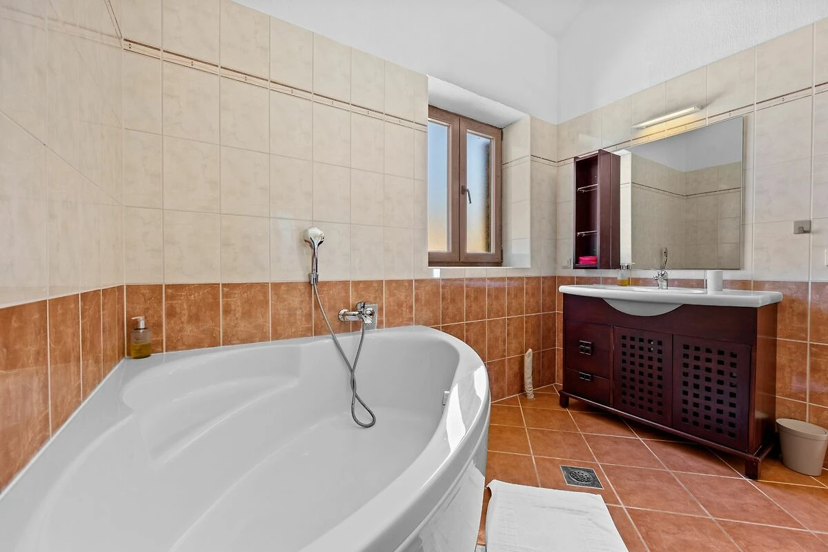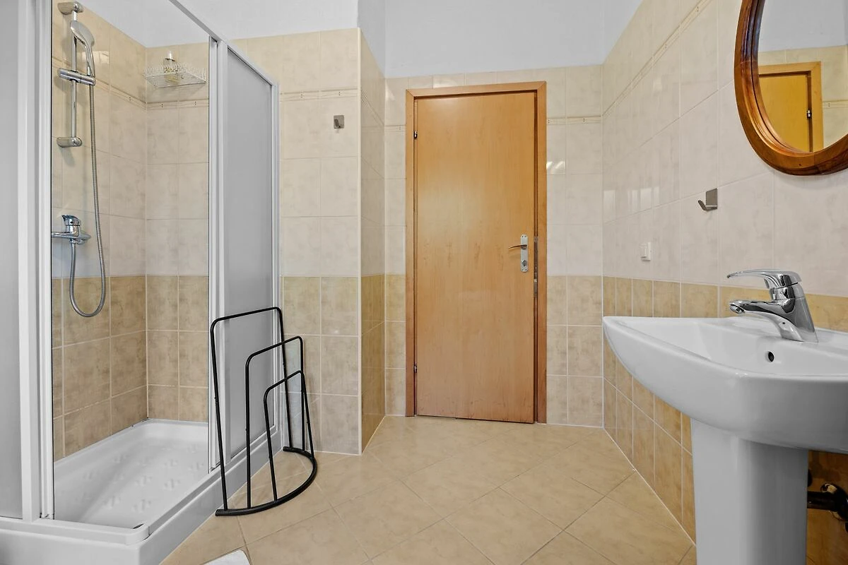 Im Erdgeschoss befindet sich eines der Schlafzimmer mit direktem Zugang zur Terrasse und zum Poolbereich sowie ein Badezimmer mit Dusche.